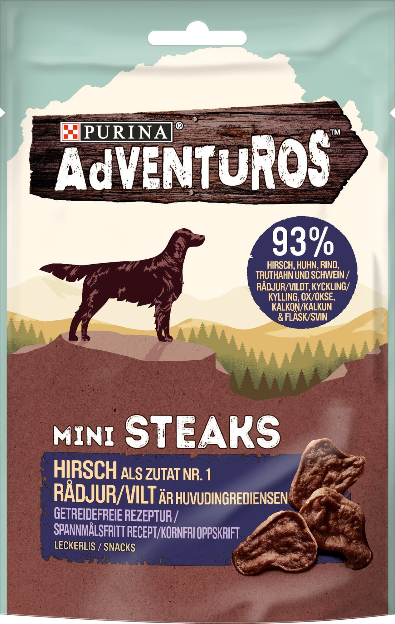 Les Mini Steaks Cerf de PURINA Adventuros sont le snack idéal pour récompenser votre chien entre deux repas ! Leur teneur élevée de 93 % en viande de qualité — cerf, poulet, bœuf, dinde et porc — leur confère un arôme irrésistible. De plus, les Mini Steaks sont formulés sans céréales et sans colorants artificiels, pour un plaisir en toute sérénité.