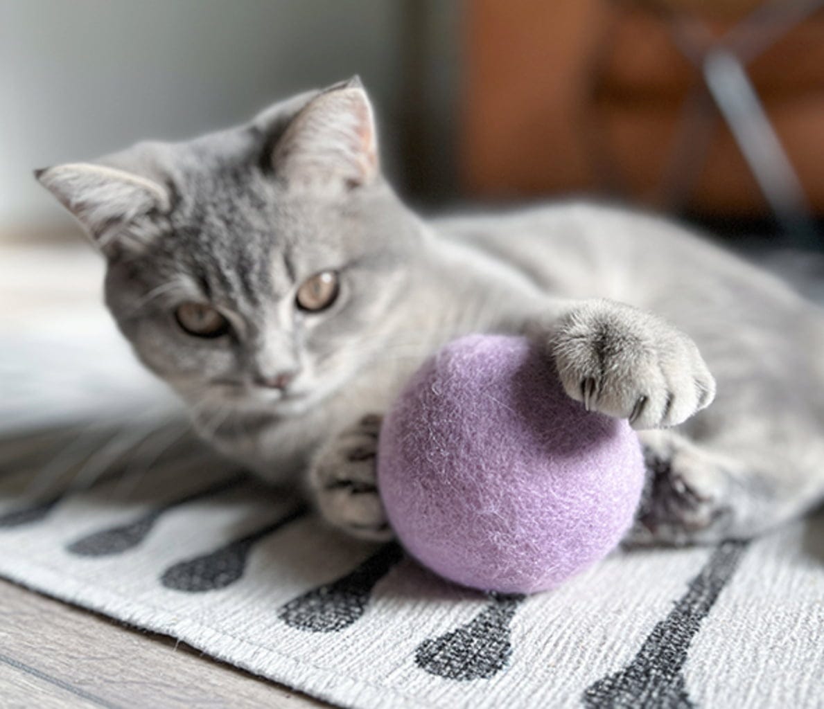 Cette balle de jeu en laine feutrée 100% naturelle promet un plaisir de jeu tout particulier grâce à son rembourrage à l'herbe à chat et à la vigne d'argent.