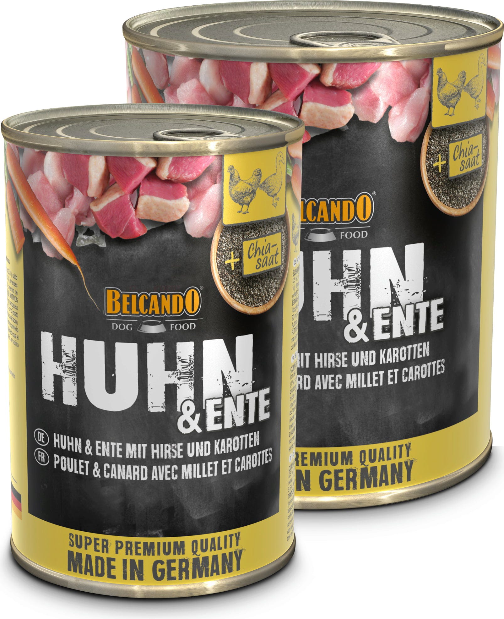 La délicieuse viande de poulet et de canard provenant d’éleveurs de confiance est enrichie de millet nutritif et de savoureuses carottes. L’huile de carthame, riche en acides gras insaturés, complète cette délicieuse recette. Sans arômes, colorants ni conservateurs ajoutés et produite en Allemagne !
