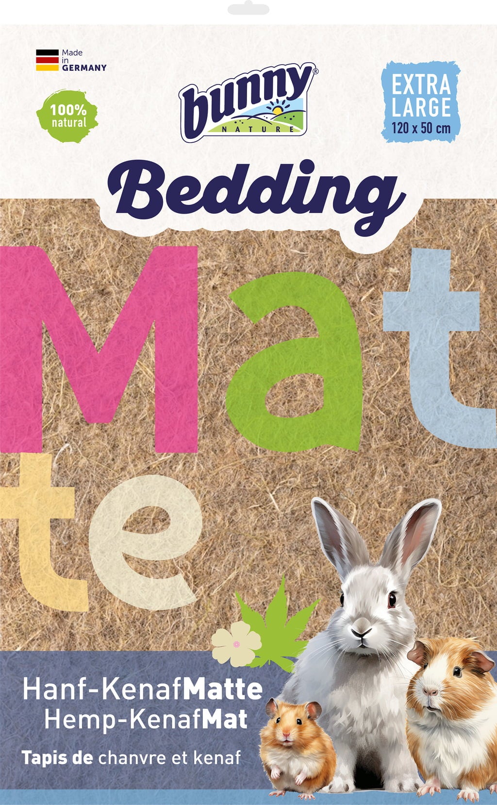 Cette litière composée à 100 % de fibres naturelles de chanvre et de kénaf séduit par sa grande polyvalence et ses excellentes propriétés. Une face plus structurée pour dormir et se reposer, et une face plus douce pour des activités adaptées à l’espèce : idéale pour les enclos et les caisses de transport.