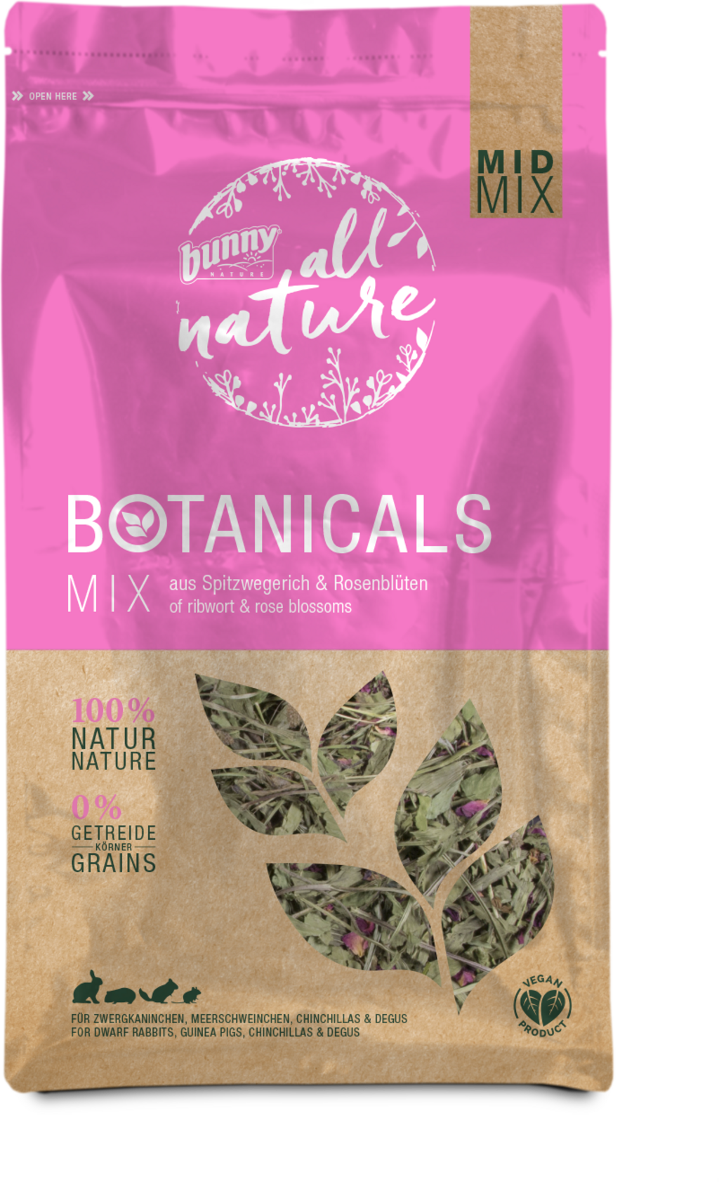 • Peut être donné en tant que snack ou mélangé avec le bunny Botanicals Maxi Mix pour obtenir un aliment complet