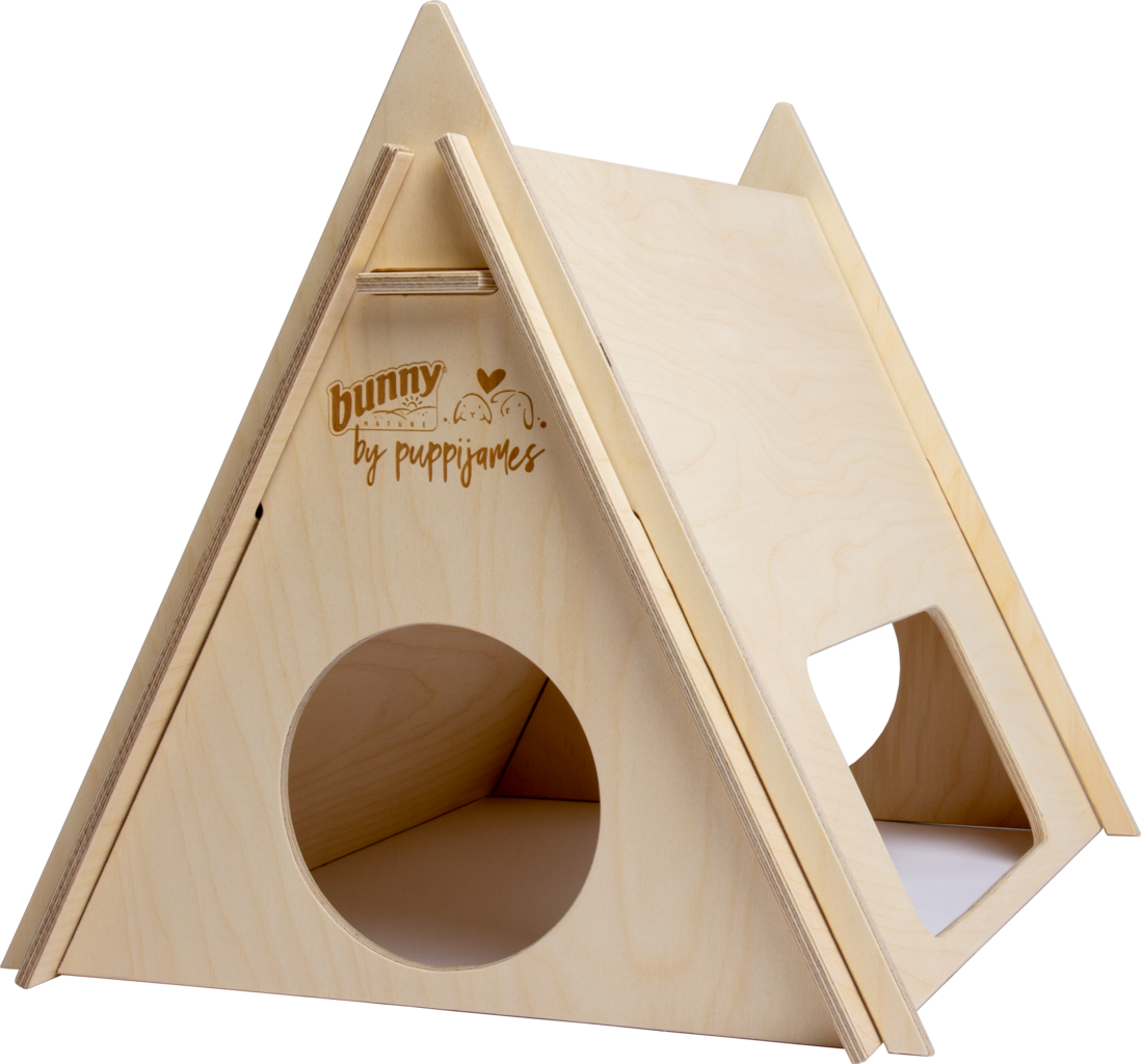 Ce lit tente en bois naturel offre à vos lapins nains un refuge indispensable, tout en apportant une touche décorative à leur habitat. Véritable élément phare de l’enclos, il peut accueillir confortablement jusqu’à deux animaux et constitue un espace idéal pour se reposer, jouer et se blottir.