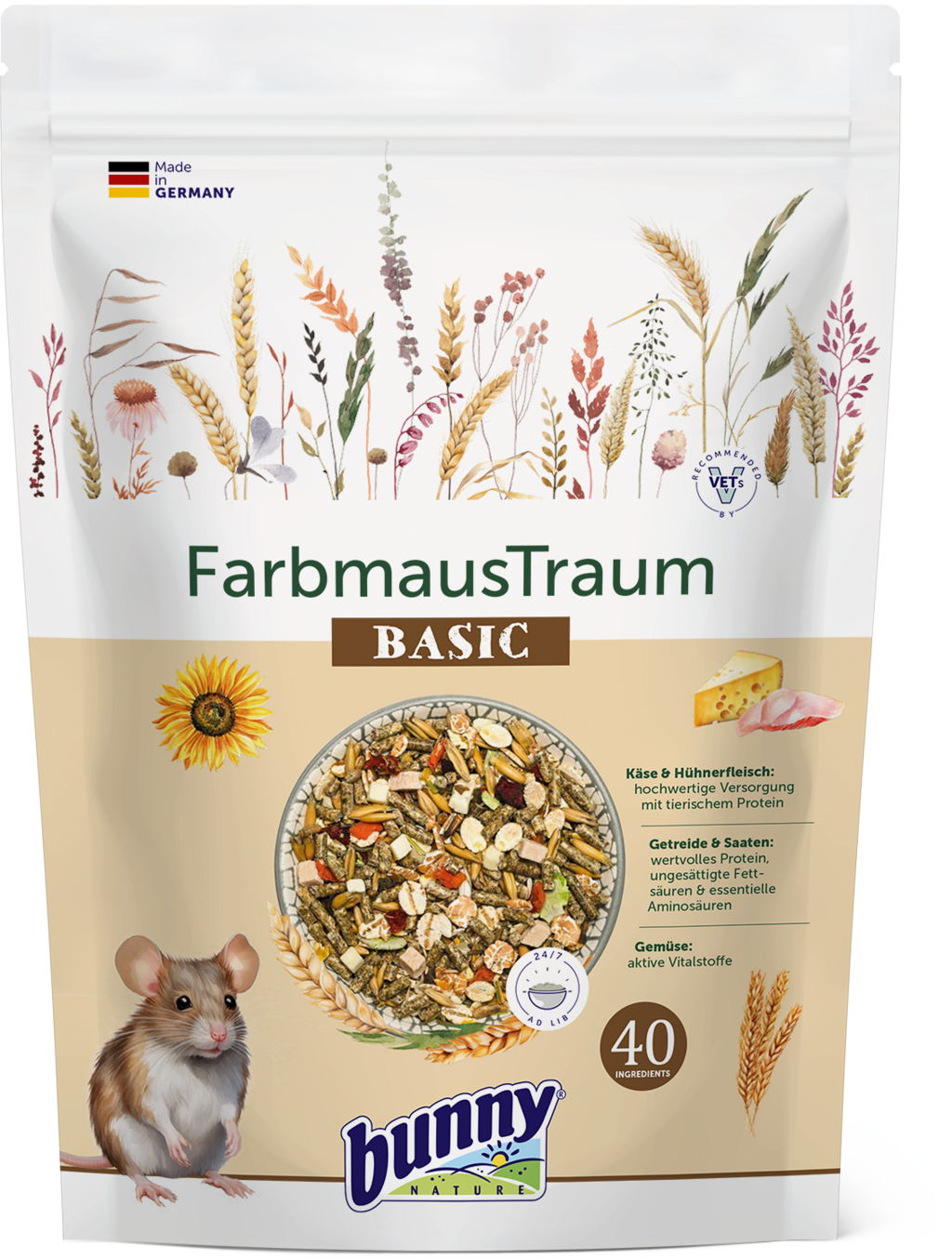 Cet aliment complet pour souris domestiques est spécialement adapté aux besoins de ces petits rongeurs et permet une alimentation respectueuse de l’espèce grâce à une sélection d’ingrédients d’origine végétale et animale. Des ingrédients issus de l’habitat d’origine des souris de couleur garantissent une appétence particulièrement élevée et correspondent à leurs habitudes alimentaires naturelles.
