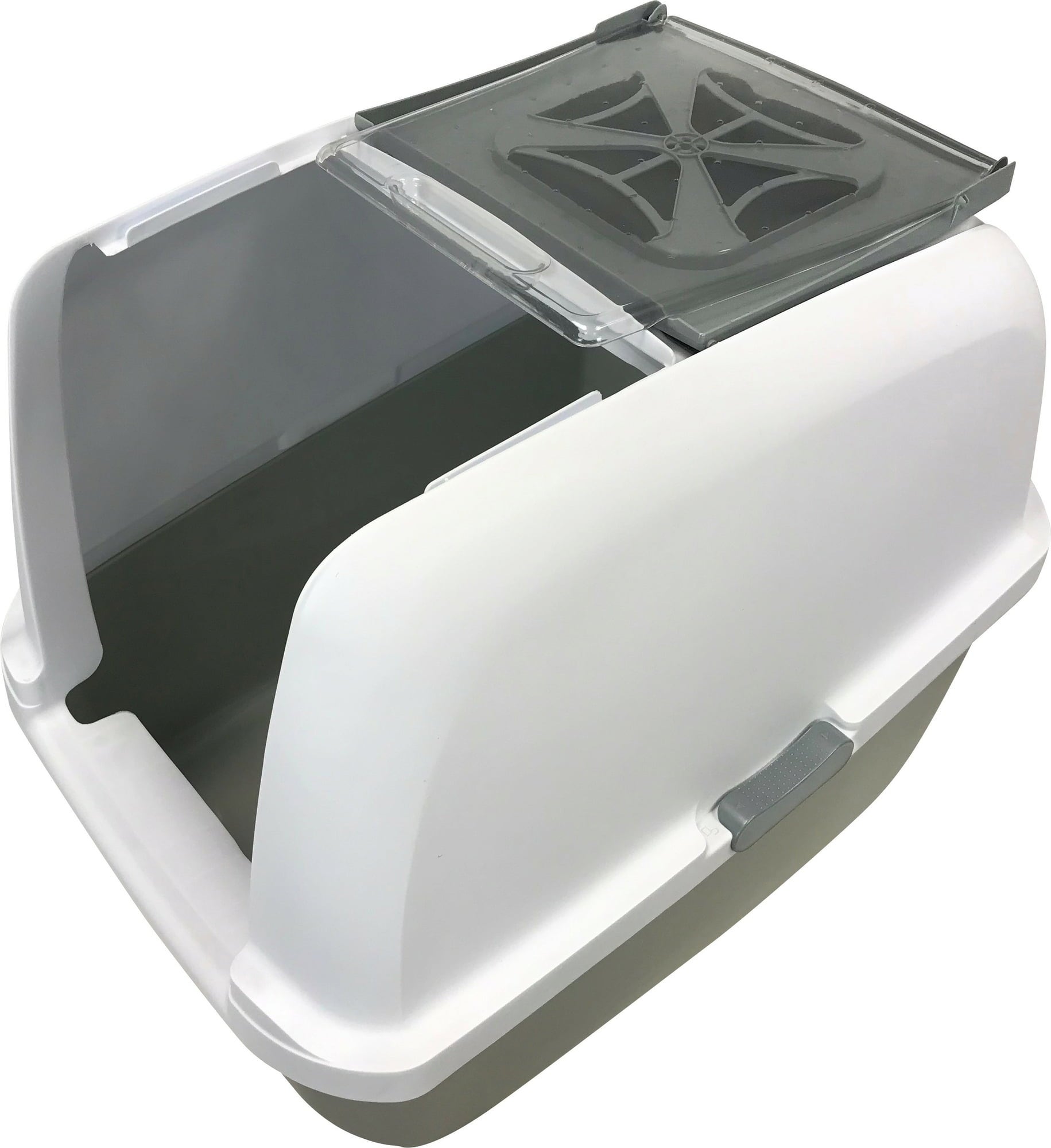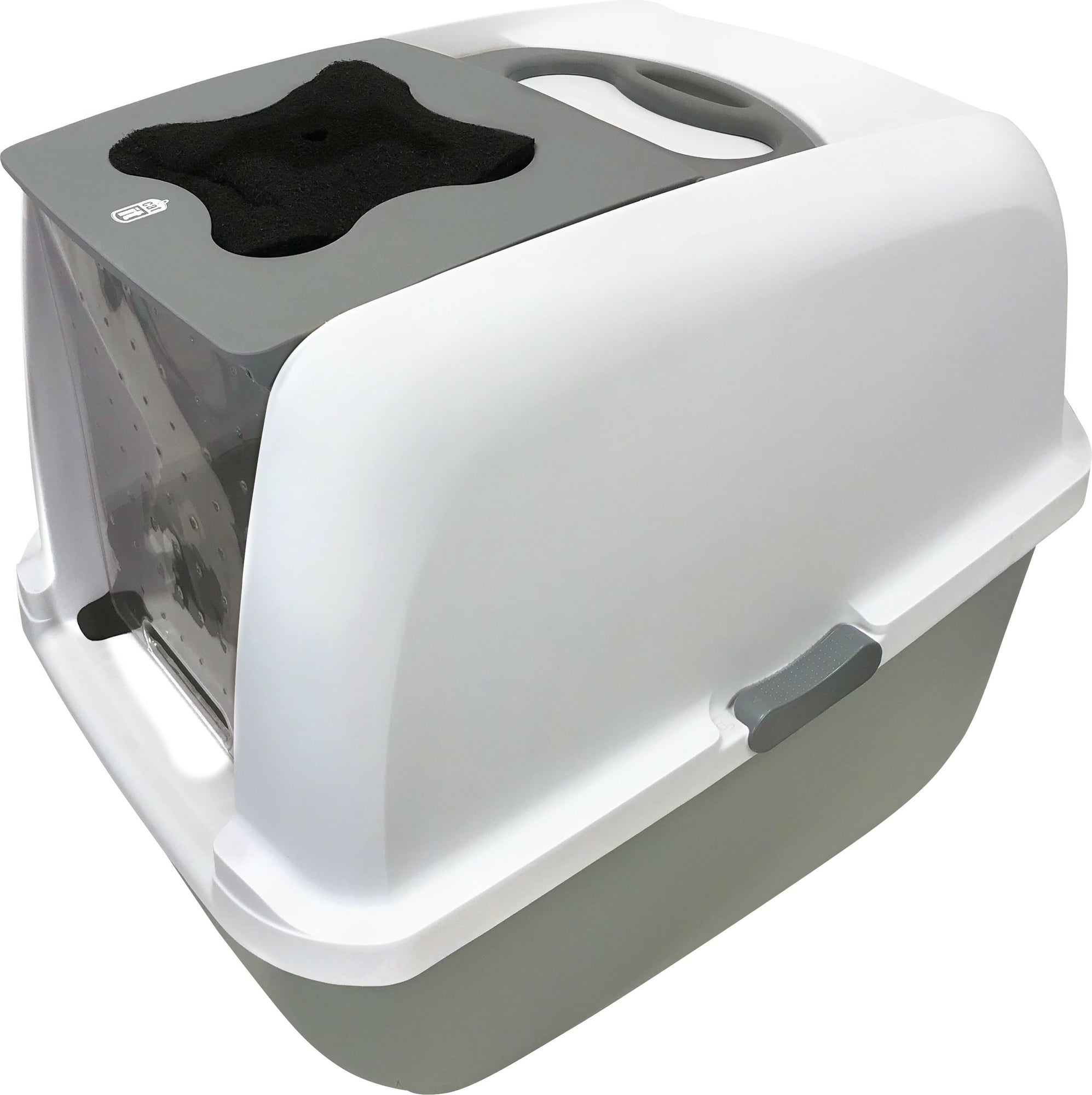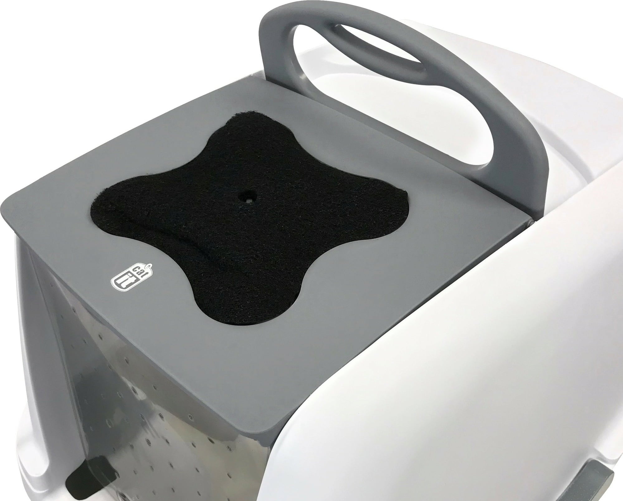 Les maisons de toilette de Catit sont idéaux pour les chats qui préfèrent faire leurs besoins en toute discrétion : l'accès est facile et le nettoyage aussi. Bien entendu, le clapet est sûr pour les pattes fragiles. Un filtre à charbon intégré réduit les odeurs à l'intérieur, et l'ensemble est composé à 100 % de plastique sans BPA, qui se nettoie sans effort et ne développent pas de taches. Une poignée de transport facilite la manipulation.