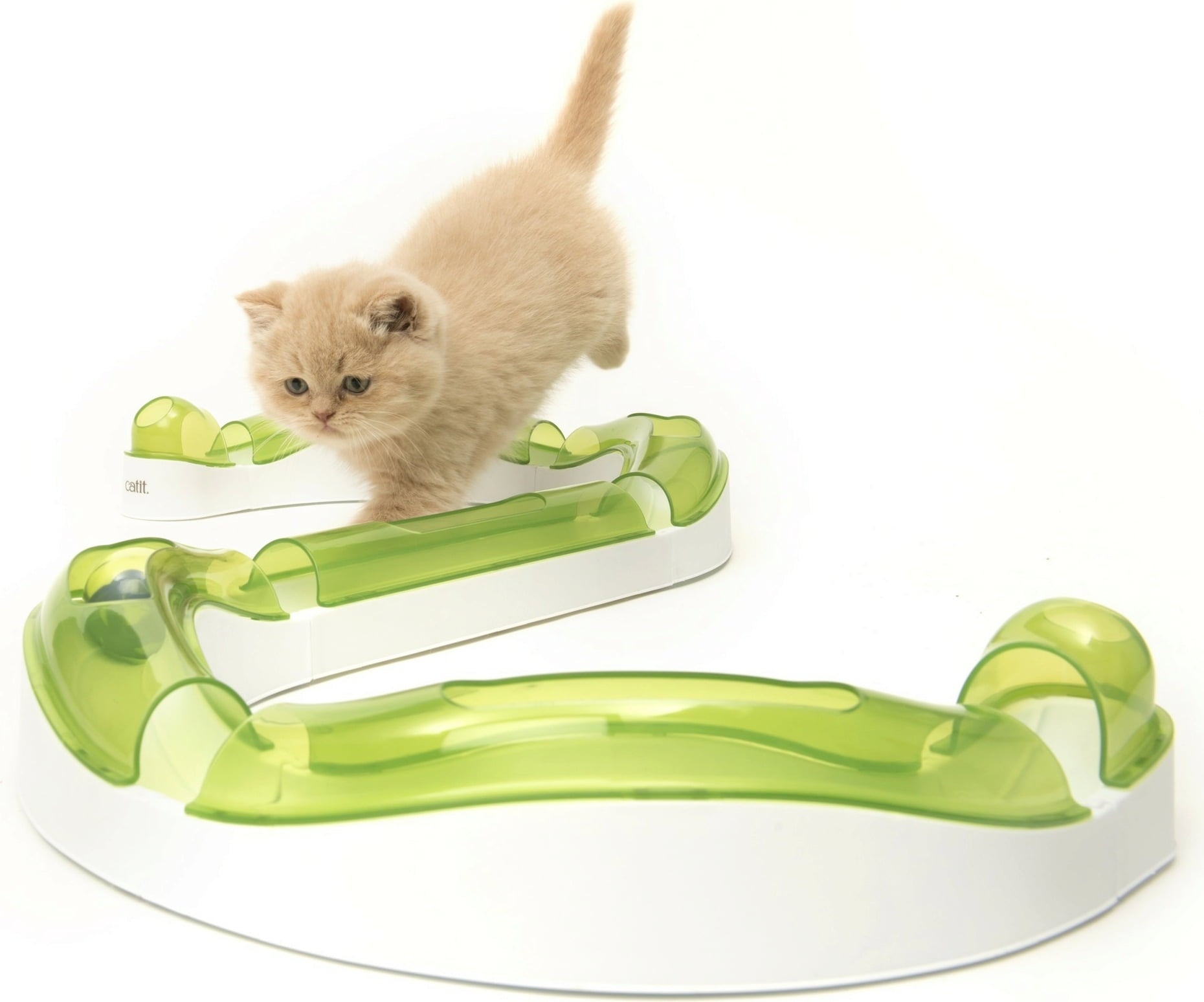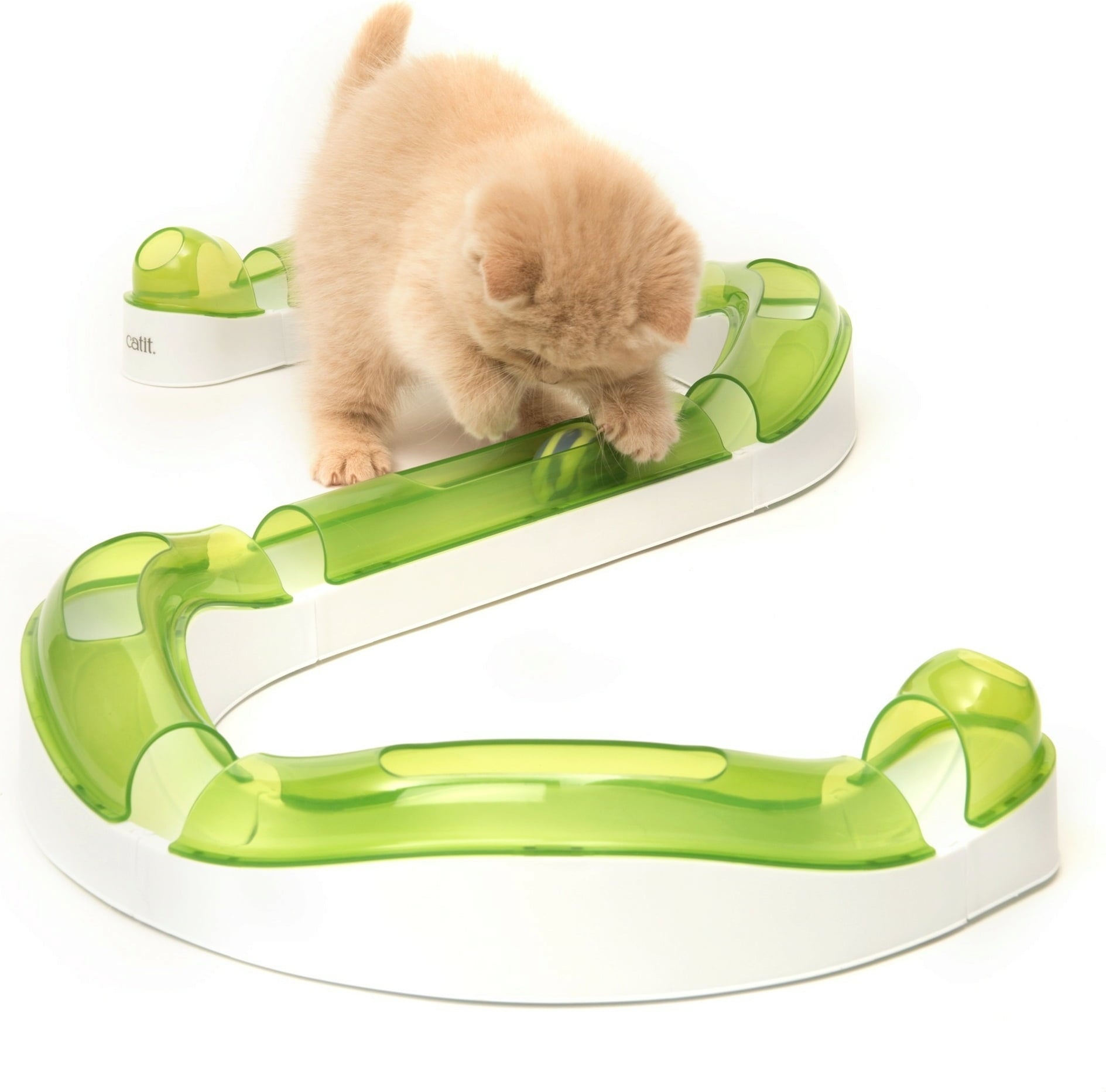 Les différents éléments sont faciles à monter, à condition que le sol soit plat. Vous pouvez assembler les éléments de plusieurs façons possibles (il existe environ 100 combinaisons) et créer ainsi l'aire de jeu ultime pour votre félin. La balle contient un grelot et se déplace à une vitesse vertigineuse dans le circuit.