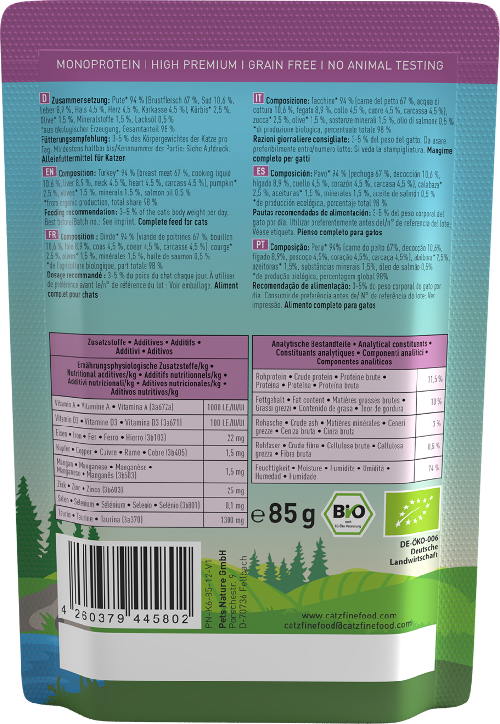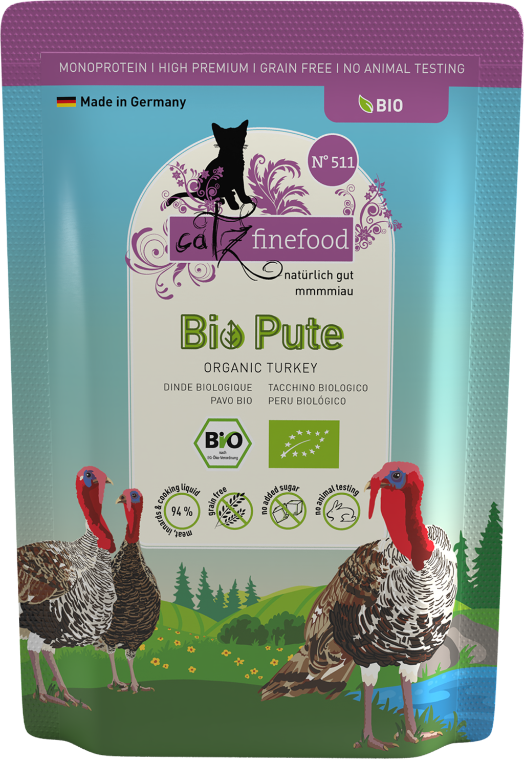 catz finefood Alimentation Humide Bio No.511 Pute Pouch, 85 g
