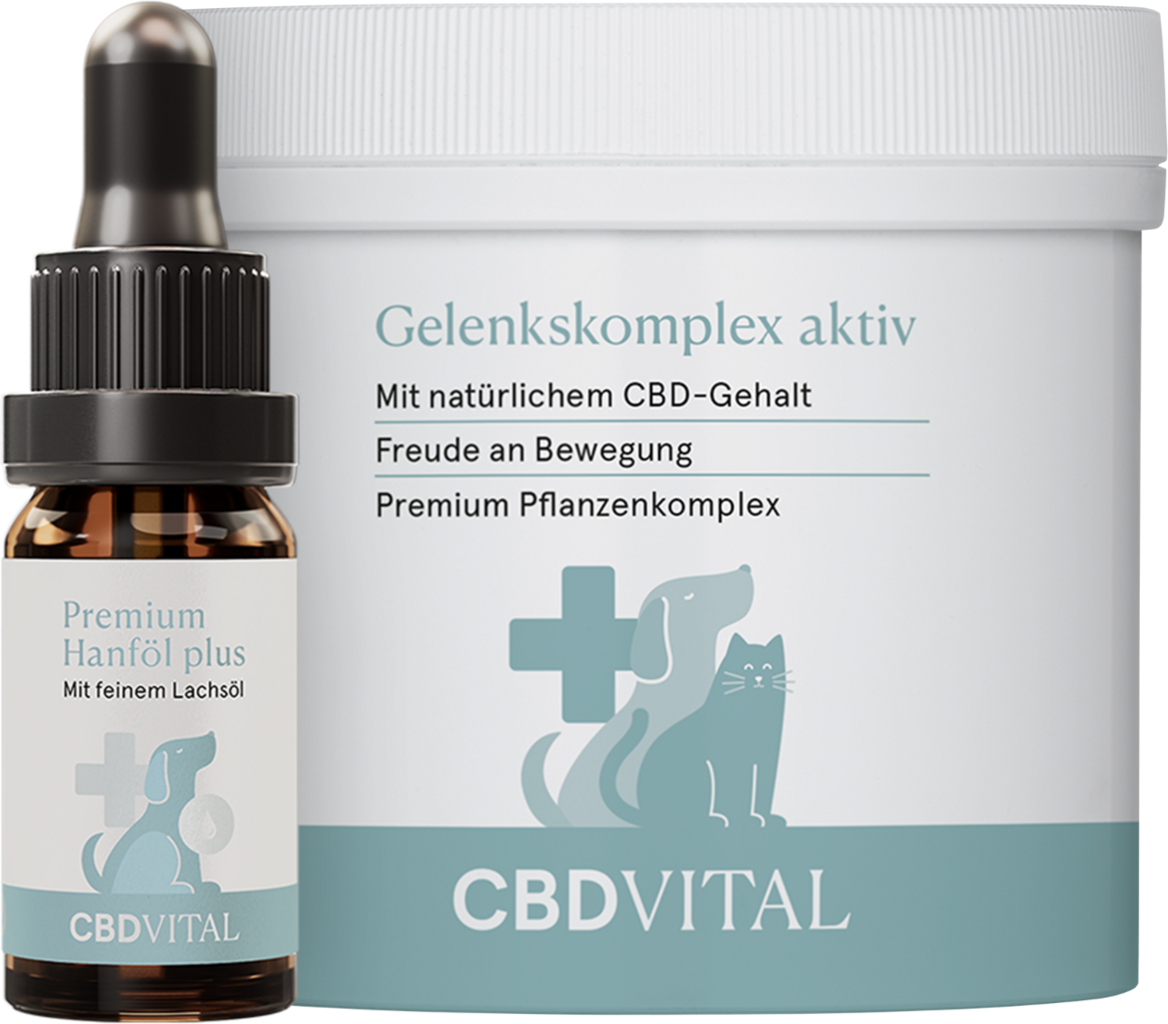 Ce coffret spécial est composé du Complexe Actif Articulations (100 g) et de l'Huile de Chanvre CBD pour Chiens (10 ml).