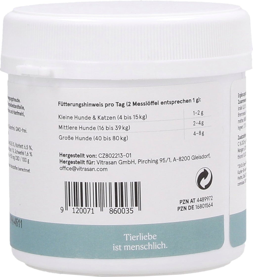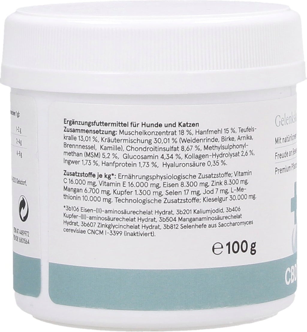 Avec une formule synergique spéciale de micronutriments, de composants à base de plantes et de composants végétaux, ce complément alimentaire a été spécialement développé pour les chiens et les chats. La formulation a été complétée avec des vitamines et du CBD naturel à base de chanvre.
