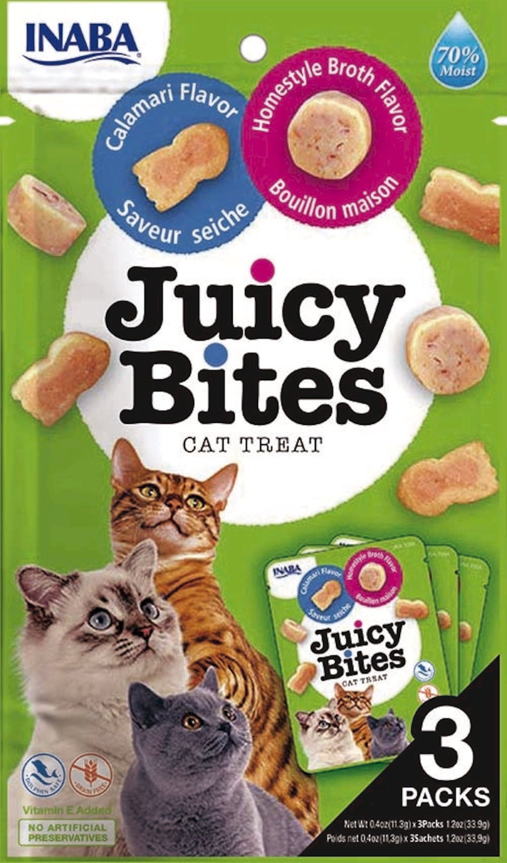 Churu Juicy Bites pour Chats Gatti 3 x 11,3 g, Bouillon maison et saveur de calamars (34 g)