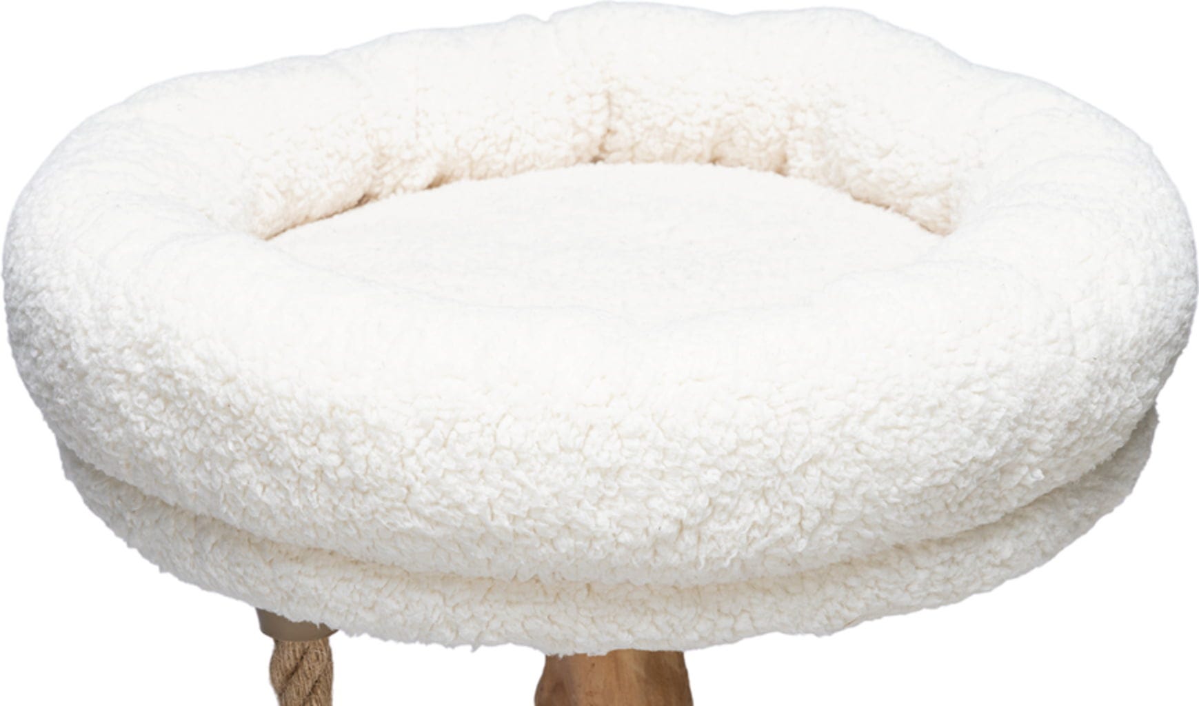 Avec sa plateforme en peluche blanche, son panier douillet et son pied en bois naturel de poirier et dattier, cet arbre à chat séduit autant par son esthétique que par sa fonctionnalité. Il offre à votre chat plusieurs espaces pour se reposer, jouer et faire ses griffes.
