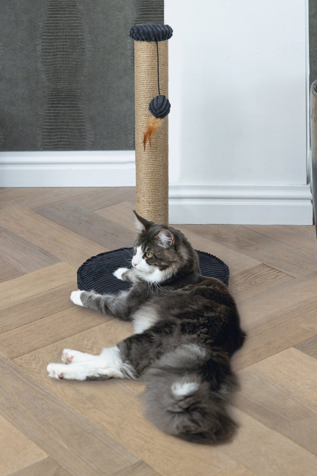 Ce griffoir avec jouet intégré offre à votre chat des heures de divertissement et une activité adaptée à ses besoins naturels, tout en séduisant par son design véritablement unique.