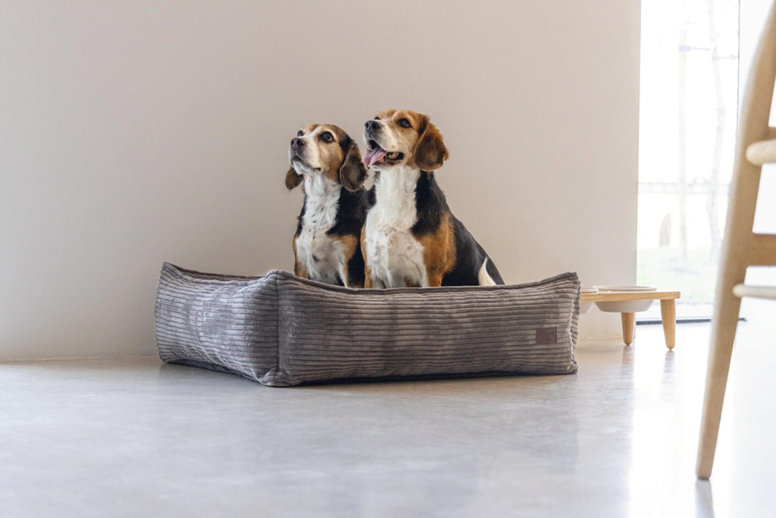 Confectionné en velours côtelé large, ce lit généreusement rembourré séduit par son charme rétro irrésistible.