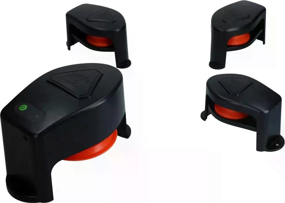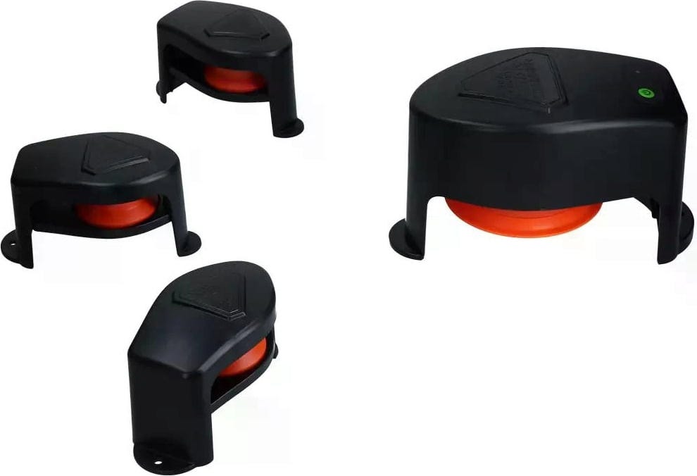Contenu de la livraison : 1 unité principale, 3 poulies, 4 piquets, 100 m de corde, 3 leurres artificiels, 3 rouleaux de sacs en plastique (à utiliser comme leurre), télécommande (2 piles AAA incluses), chargeur, sac à dos.