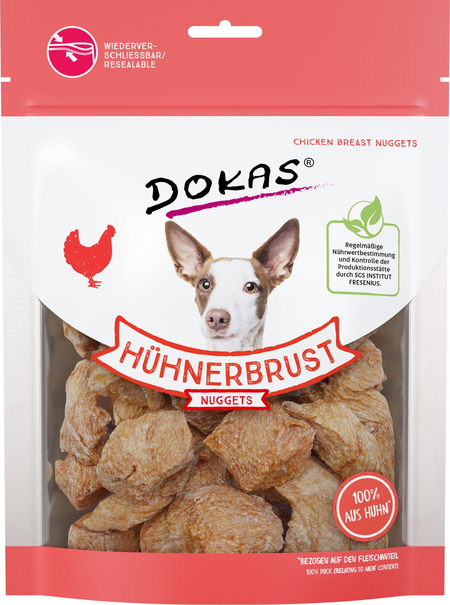 Les nuggets de blanc de poulet de Dokas sont le snack idéal pour votre animal de compagnie. Grâce à un procédé de fabrication particulier, le goût et les nutriments sont presque entièrement préservés. Irrésistiblement savoureux !