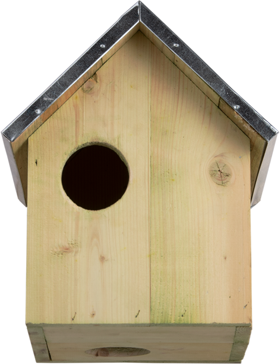 Accrochez plusieurs abris à la vue les uns des autres. Un abri pour écureuil a toujours plusieurs entrées possibles. Il est important de placer cet abri dans un endroit donnant aux écureuils la sécurité nécessaire. En cas de danger, l'abri pourra être quitté rapidement. Fixez-le le plus haut possible dans un arbre et si possible orienté sud-est. Pin certifié FSC® avec toit en zinc.