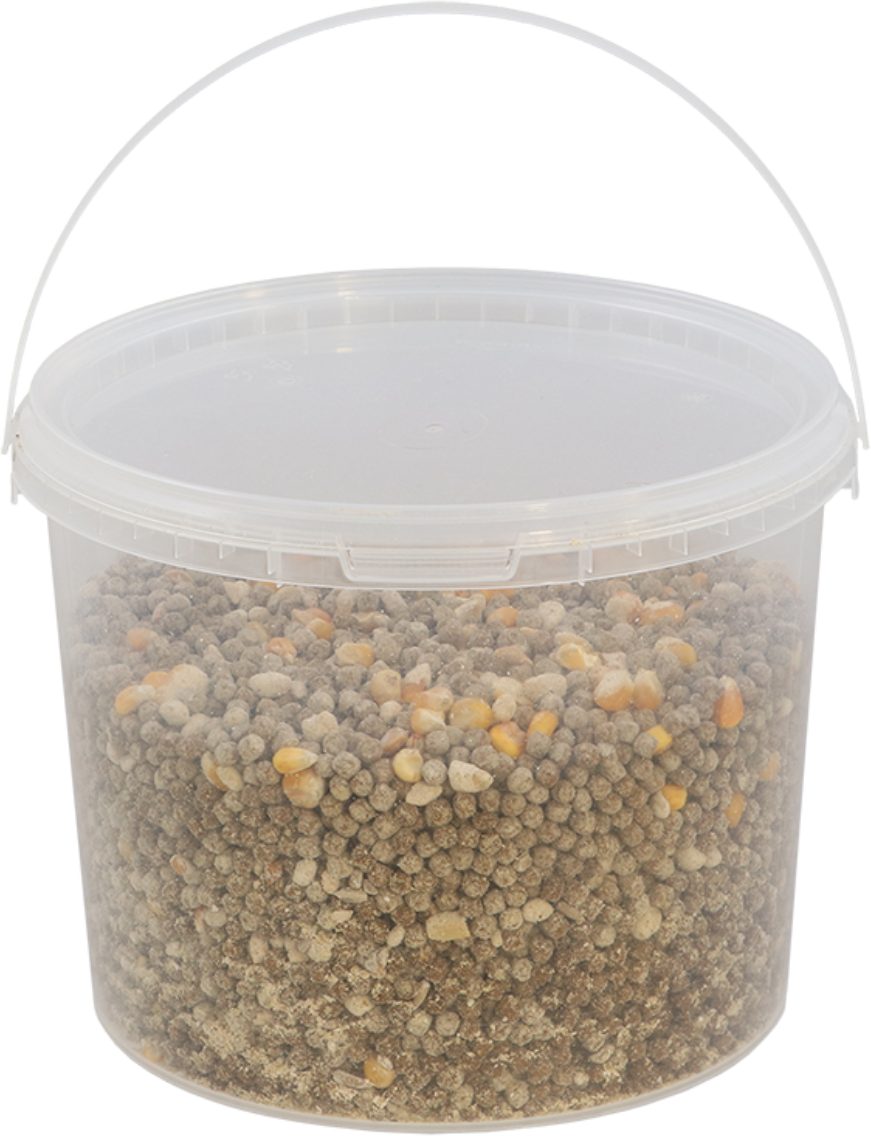 35 % flocons d'avoine, 20 % Graines de tournesol, 20 % cacahuètes, 15 % maïs, 10 % viande de boeuf séchée