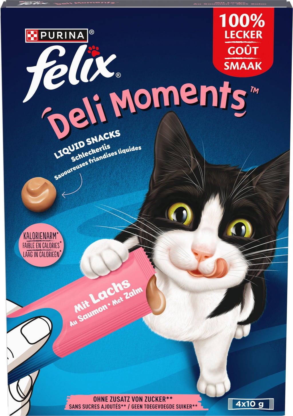 Deli Moments Salmon de Felix est une délicieuse crème onctueuse au goût de saumon, à offrir de temps en temps à votre animal de compagnie. Cette gourmandise ne contient ni colorants ni sucres ajoutés.