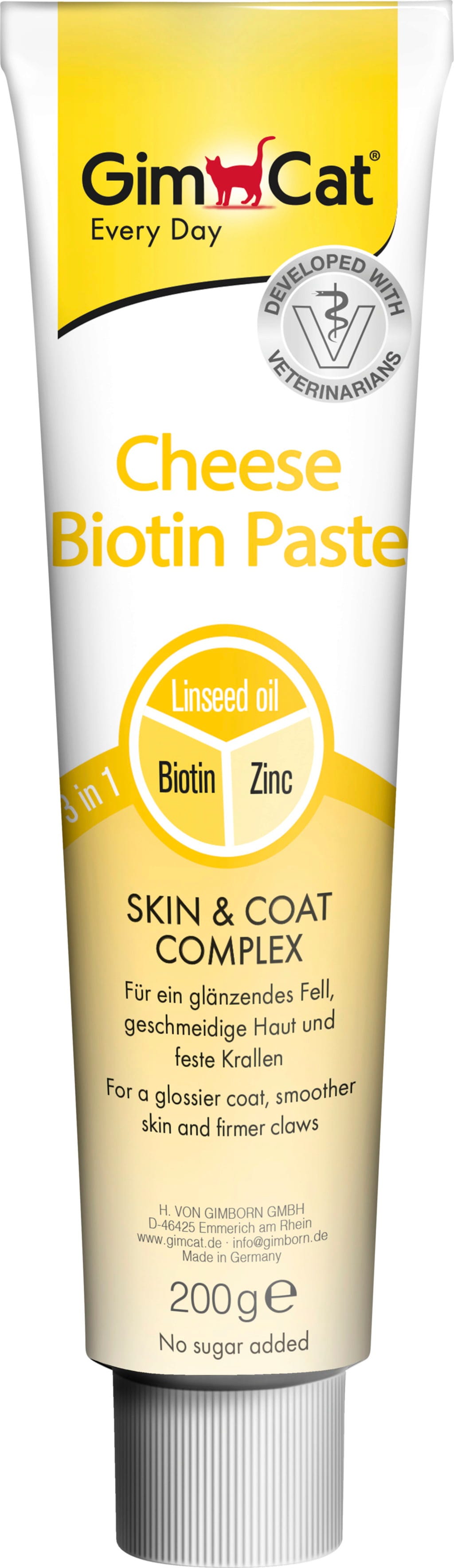 Un véritable régal pour votre chat : la pâte au fromage GimCat est non seulement riche en nutriments, mais séduit aussi les papilles dès l’âge de 6 semaines grâce à de savoureux fromages italiens à pâte dure. Elle contient également un complexe actif naturel 3-en-1 à base de biotine, de zinc et d’huile de lin.