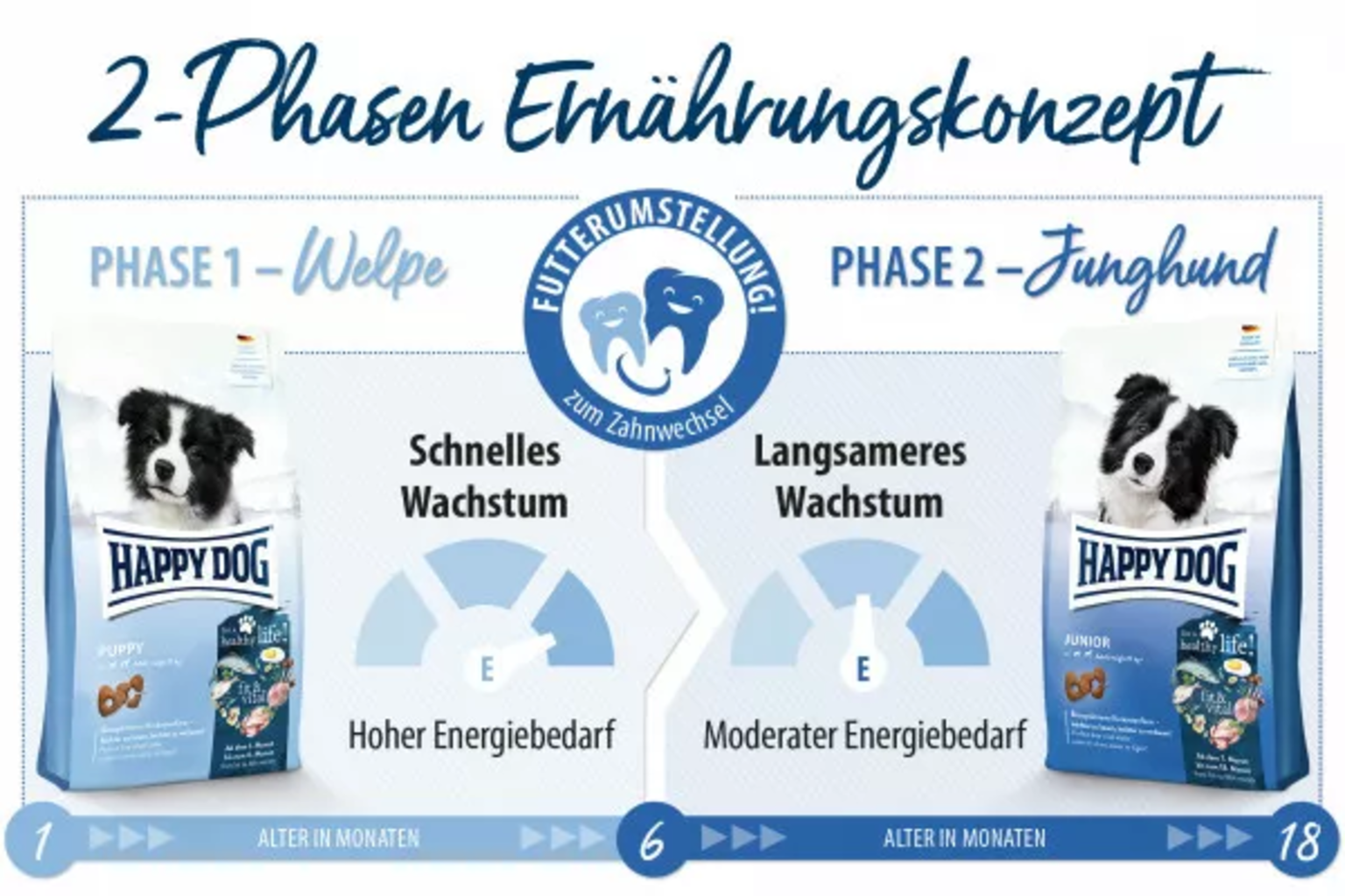 Mode d’emploi : les chiots en pleine croissance ont besoin de beaucoup d’énergie. Il convient donc d’adapter la quantité de nourriture en conséquence. Les rations recommandées indiquées dans le tableau ci-dessous peuvent servir de repère. Veiller à ne pas suralimenter. Si des snacks sont donnés en récompense, la quantité d’aliment doit être réduite.