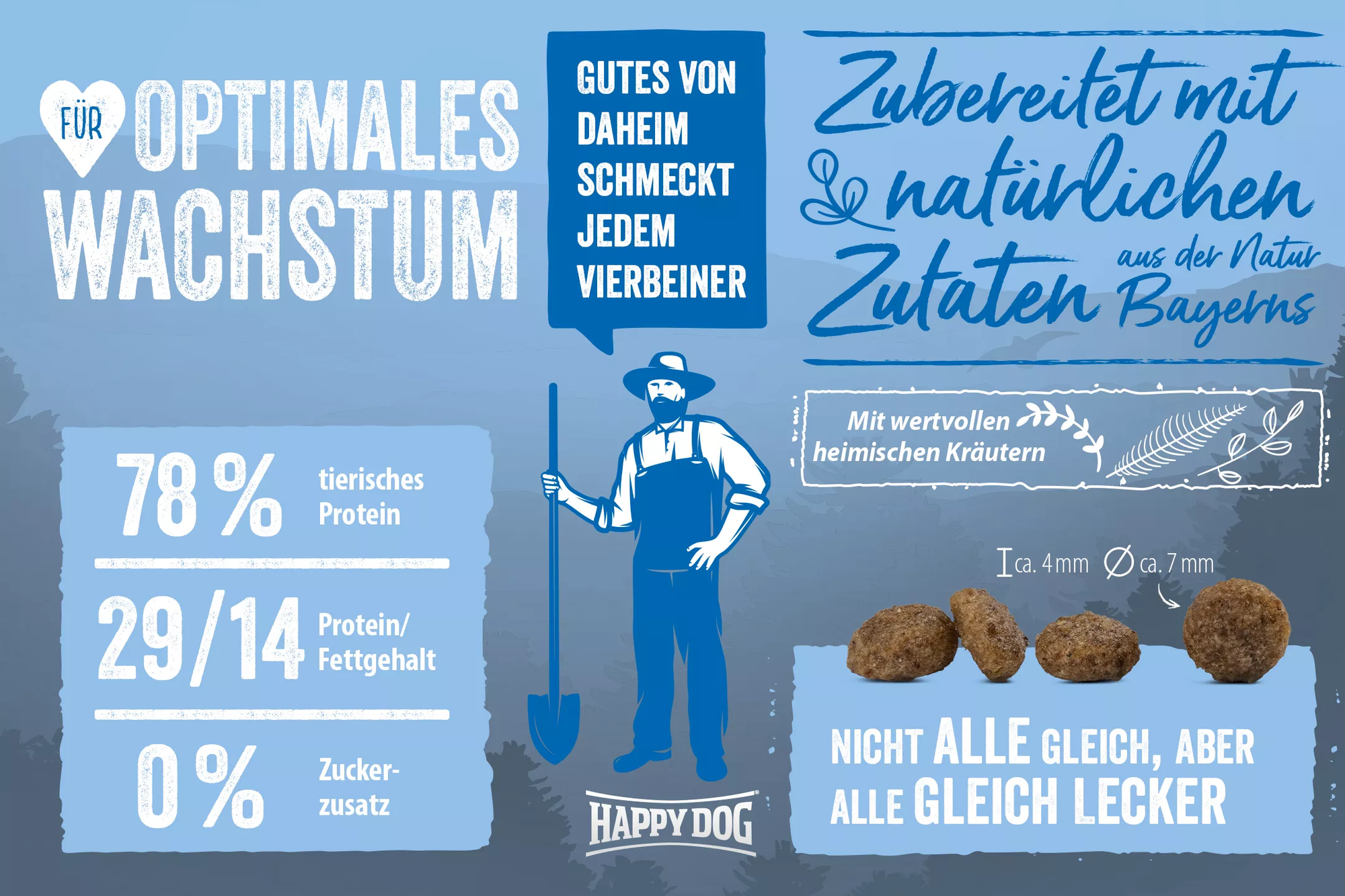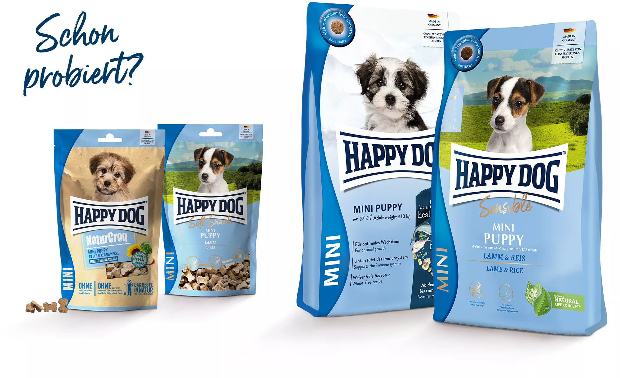 Les chiots en pleine croissance ont besoin d’une alimentation qui leur apporte des nutriments essentiels. Les croquettes NaturCroq Mini Puppy de Happy Dog offrent aux chiots une variété équilibrée de protéines issues de la viande et de céréales complètes. La savoureuse recette, élaborée à partir de matières premières provenant de la région bavaroise, est également enrichie d’herbes locales appétissantes, reconnues pour leurs précieux nutriments.