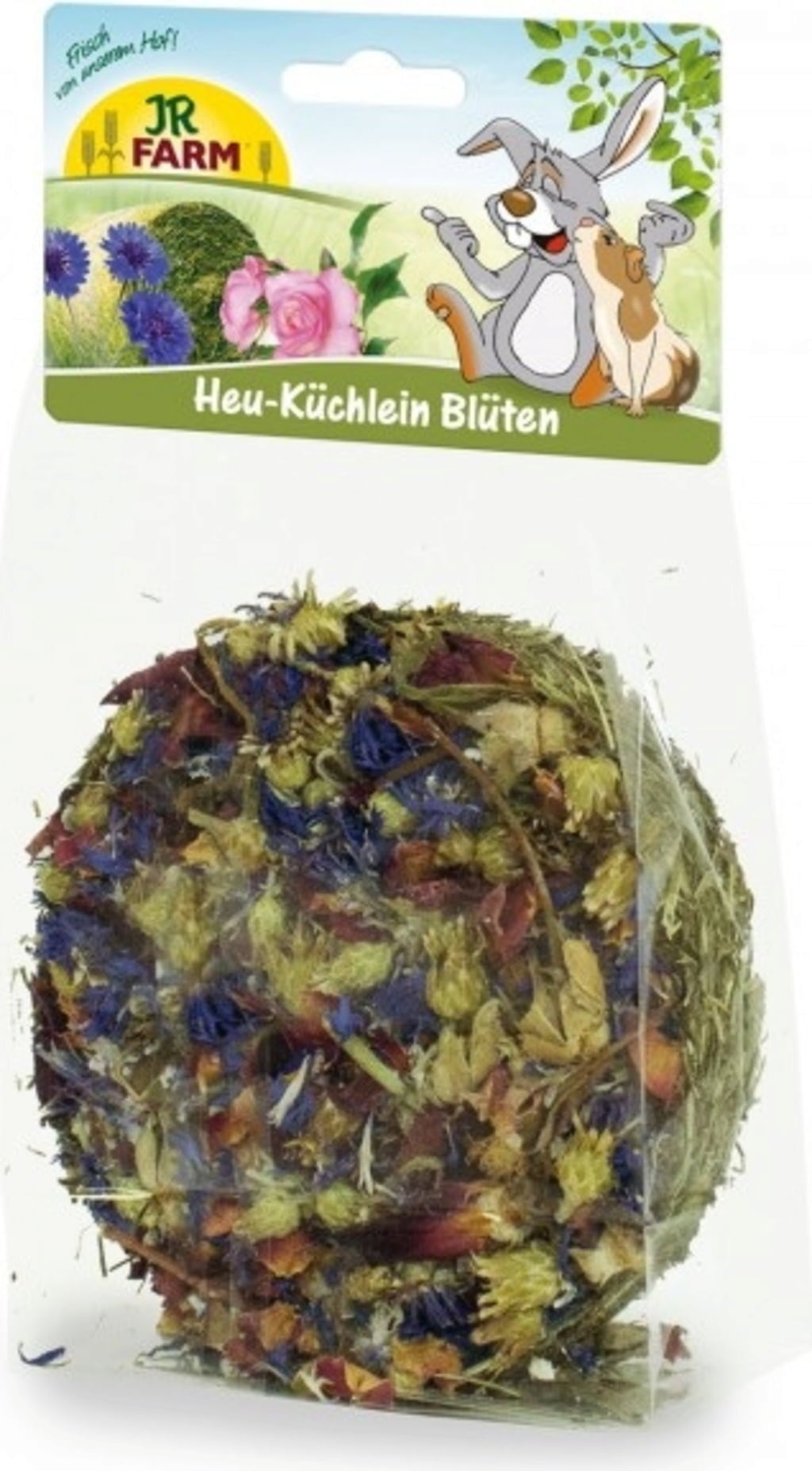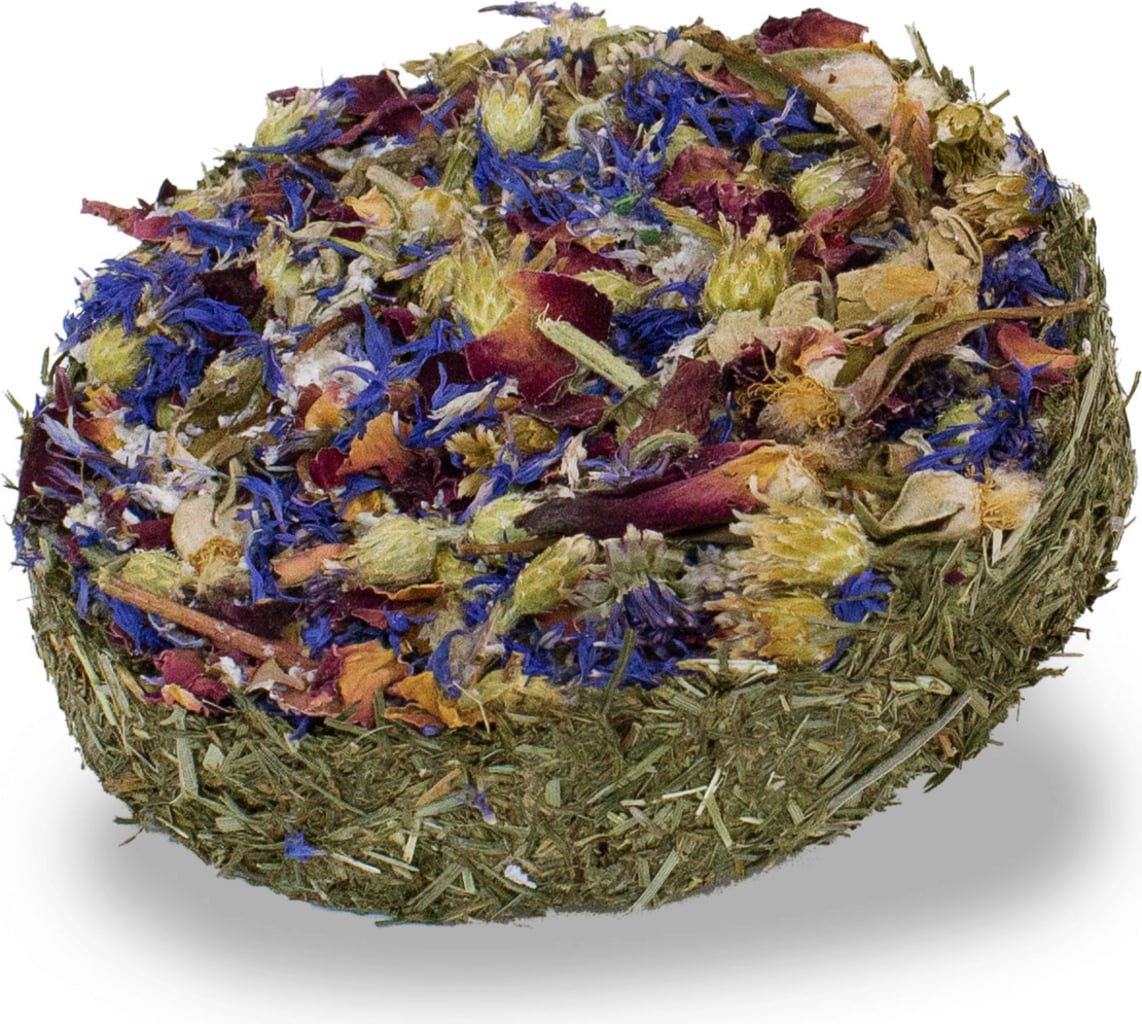 Les rongeurs et les lapins nains ne se feront pas prier : cette galette au foin colorée et délicieuse aux fleurs de bleuets et de roses met immédiatement l'eau à la bouche. Elle contient des herbes aromatiques soigneusement séchées ainsi que du foin.