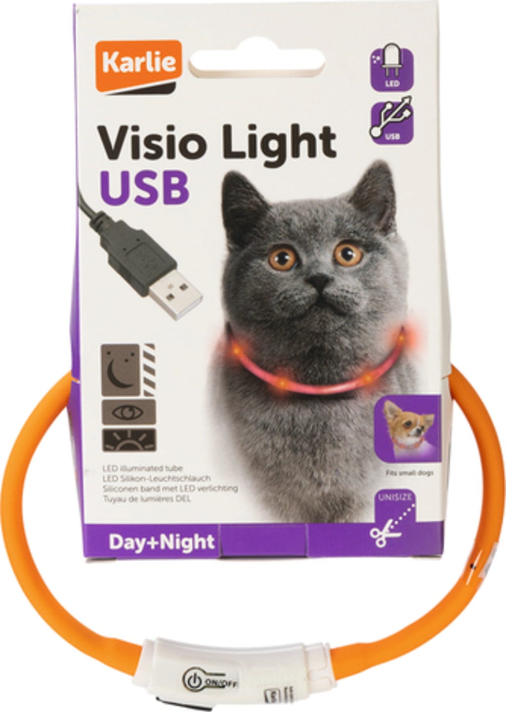 Collier Lumineux LED Visio Light de Karlie éclaire efficacement l’obscurité et assure une excellente visibilité de votre chat d’extérieur en cas de faible luminosité – jusqu’à une portée impressionnante de 500 mètres. Résistant aux éclaboussures, ce collier est équipé d’une batterie Li-Ion rechargeable à l’aide d’un câble USB. Il n’est donc pas nécessaire d’utiliser des piles.