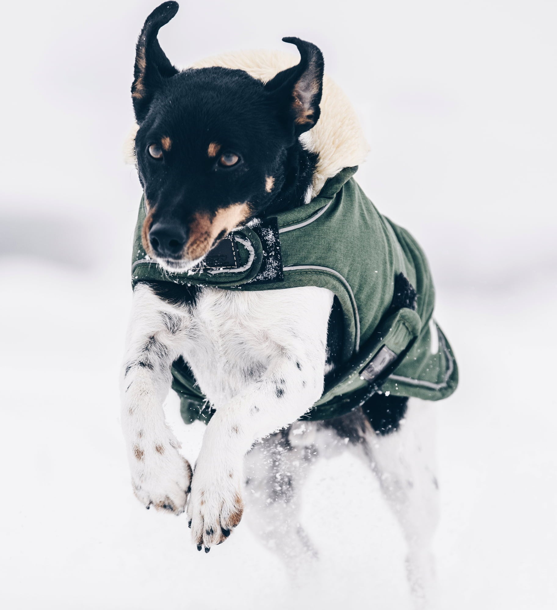Manteau imperméable pour chien qui garde votre compagnon à quatre pattes au sec et au chaud lors des froides journées d'hiver. Le garnissage 300 g et la doublure en fourrure de lapin synthétique emmagasinent la chaleur corporelle sans être trop lourd sur le corps du chien. Le cou est également protégé par une capuche repliable. Le passage pour la laisse est protégé par du cuir synthétique sous la capuche. La matière est élastique et s'adapte parfaitement au corps de votre chien. L'extérieur est en polyester avec des éléments réfléchissants. Le manteau s'ajuste parfaitement au chien grâce aux fermetures velcro sur la poitrine et le ventre. Lavage en machine jusqu'à 30°C. Ne pas passer au sèche-linge !