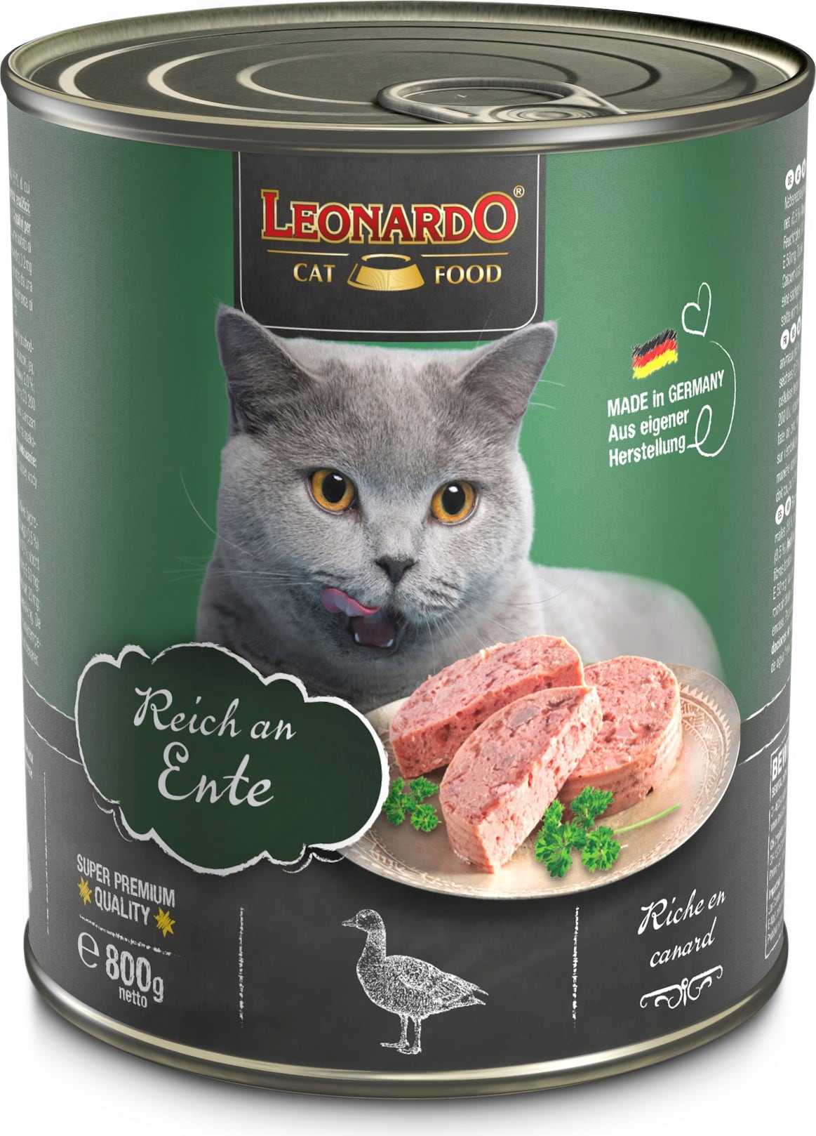 Cette pâtée premium ravit les papilles des chats gourmets avec de délicieuses bouchées de viande de canard. Seuls des ingrédients frais d’origine animale sont utilisés, sans ajout de céréales ni de sucre.