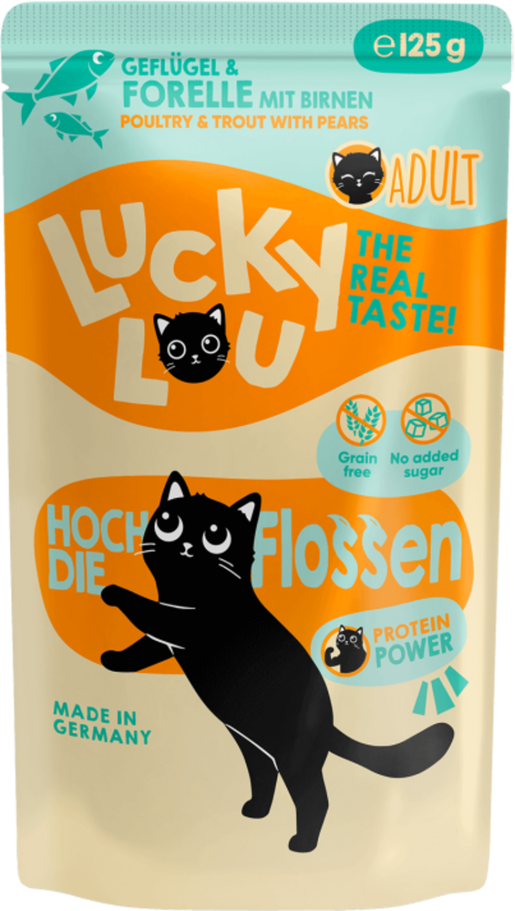 Lucky Lou Alimentation Humide Lifestage Pouch Adult Volaille & Truite, 125 g