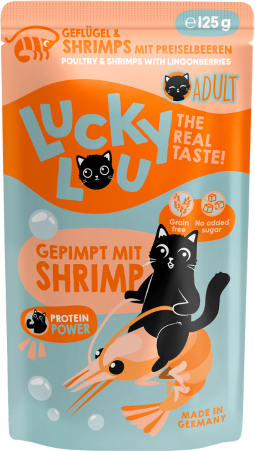 Lucky Lou Alimentation Humide Lifestage Pouch Adulte Volaille & Crevettes, 125 g