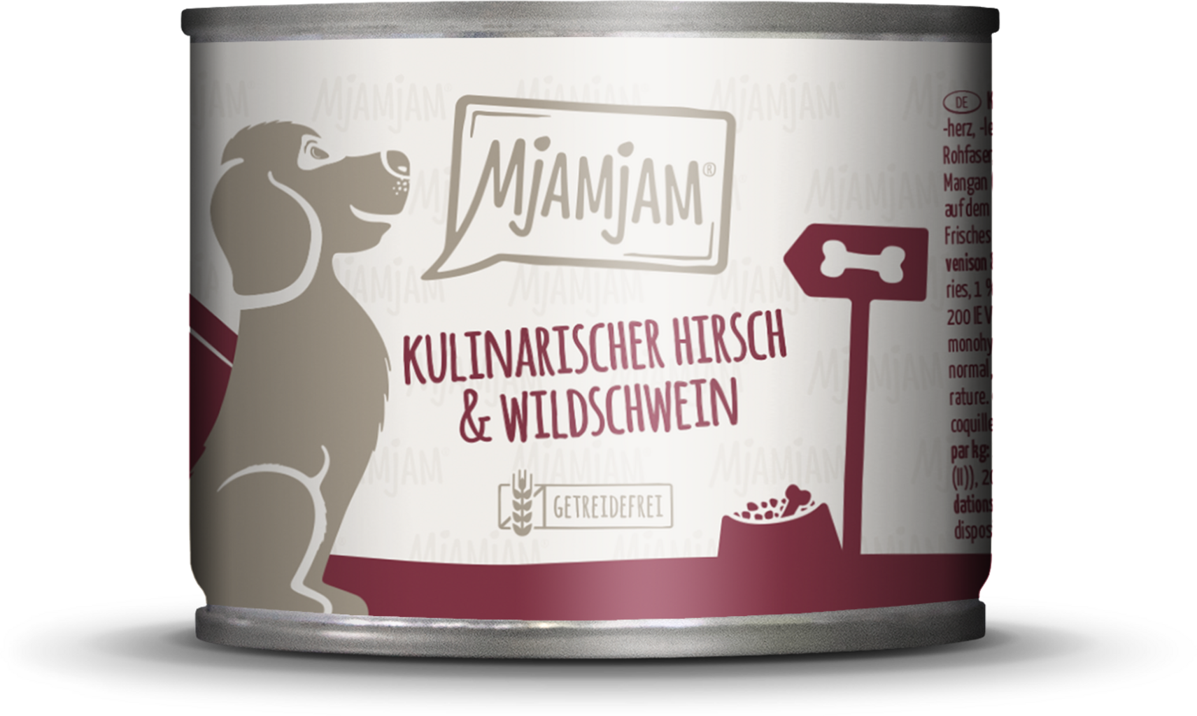 La nourriture humide de Mjamjam offre à votre chien une saveur riche, une qualité incomparable et une touche d’amour. Votre animal de compagnie reçoit un repas sain à base de viande fraîche de gibier et de cranberries fruitées. La recette contient tout ce qu’il faut pour répondre pleinement à ses besoins.