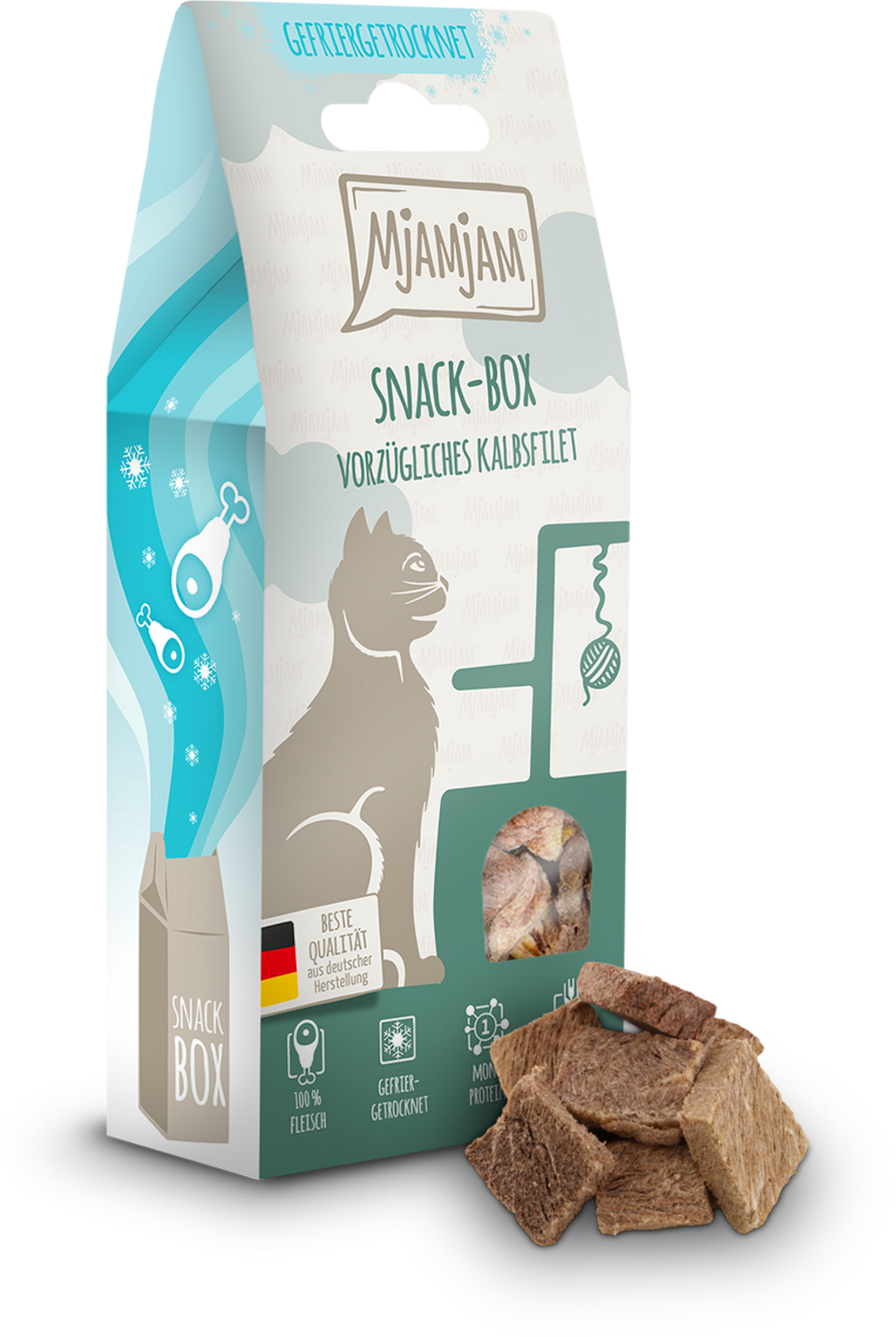 Les friandises de la Snack Box de Mjamjam sont la récompense parfaite pour faire plaisir à votre chat. Préparée avec du filet de veau frais délicatement lyophilisé, cette snack box offre un produit naturel que votre compagnon félin va adorer.