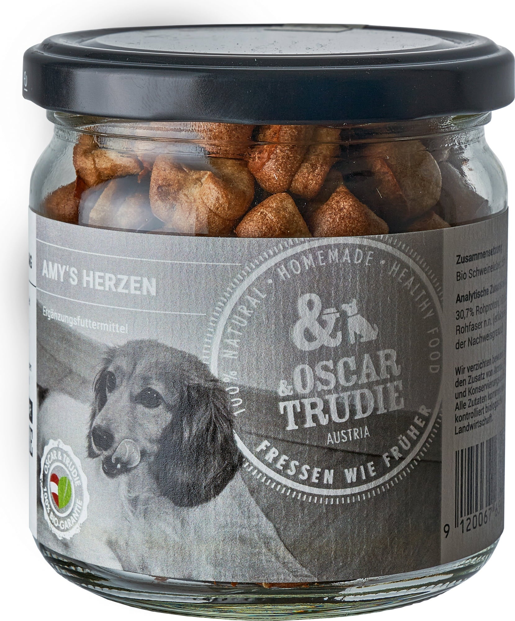Avec les Cœurs d'Amy, déclarez tout l'amour que vous portez à votre chien ! Ces délicieuses friandises sont cuites à la main en Basse-Autriche et ne contiennent que des matières premières de la plus haute qualité et de la plus grande pureté, toutes issues de l'agriculture biologique : foie de porc, farine de pommes de terre et œufs. Rien que le meilleur pour votre chien !