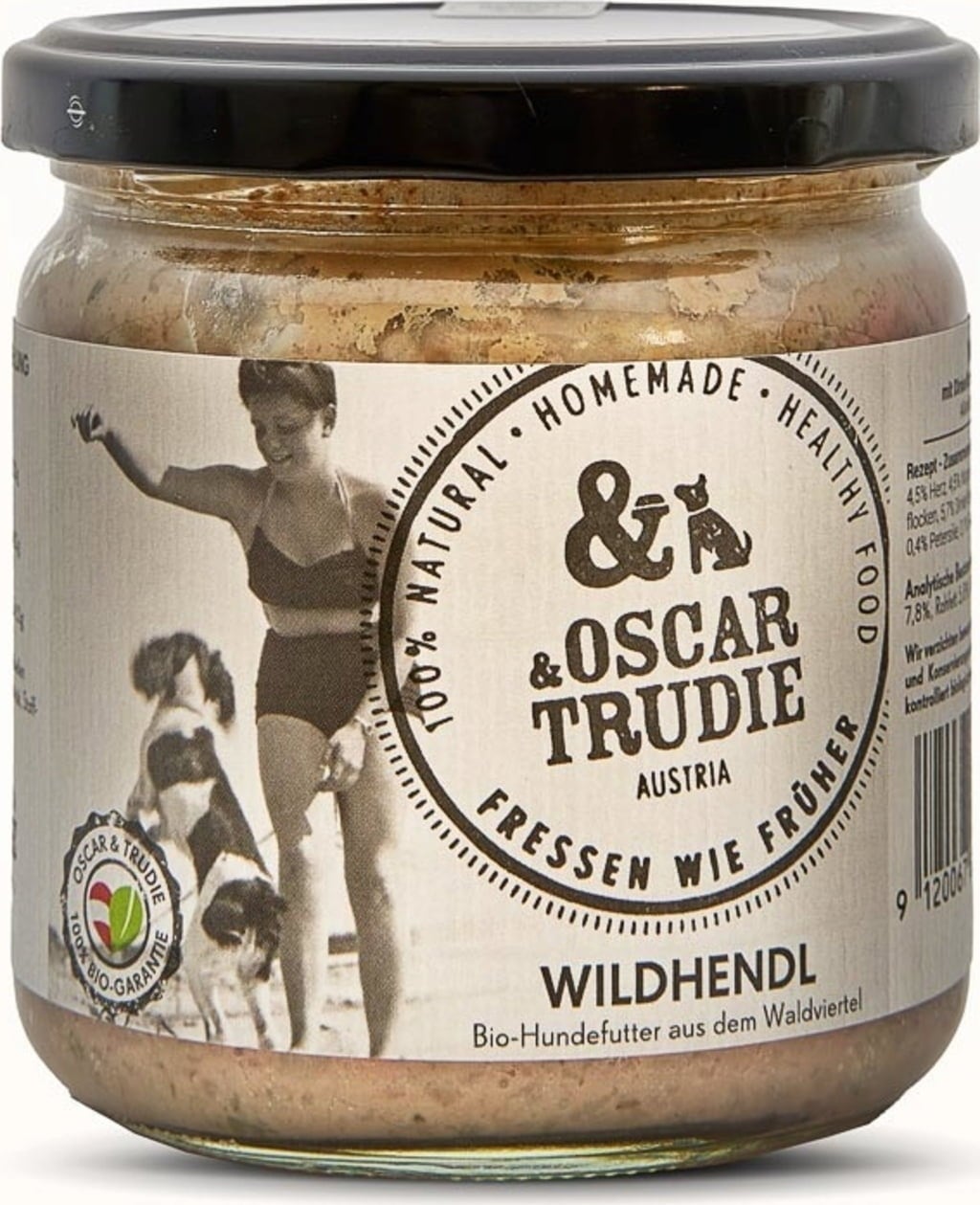 Wildhendl ("poulet sauvage" dans la langue de Goethe) est un aliment bio pour chiens 100 % préparé en Autriche et 100% bio. Tous les ingrédients proviennent de cultures biologiques contrôlées et savamment préparés pour un goût incroyable.