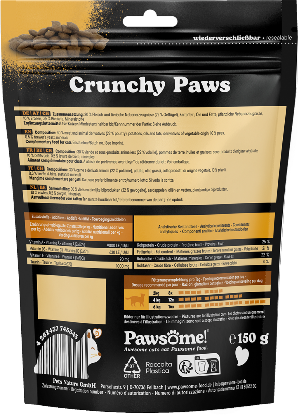 Pawsome! Crunchy Paws - Volaille, 150 g