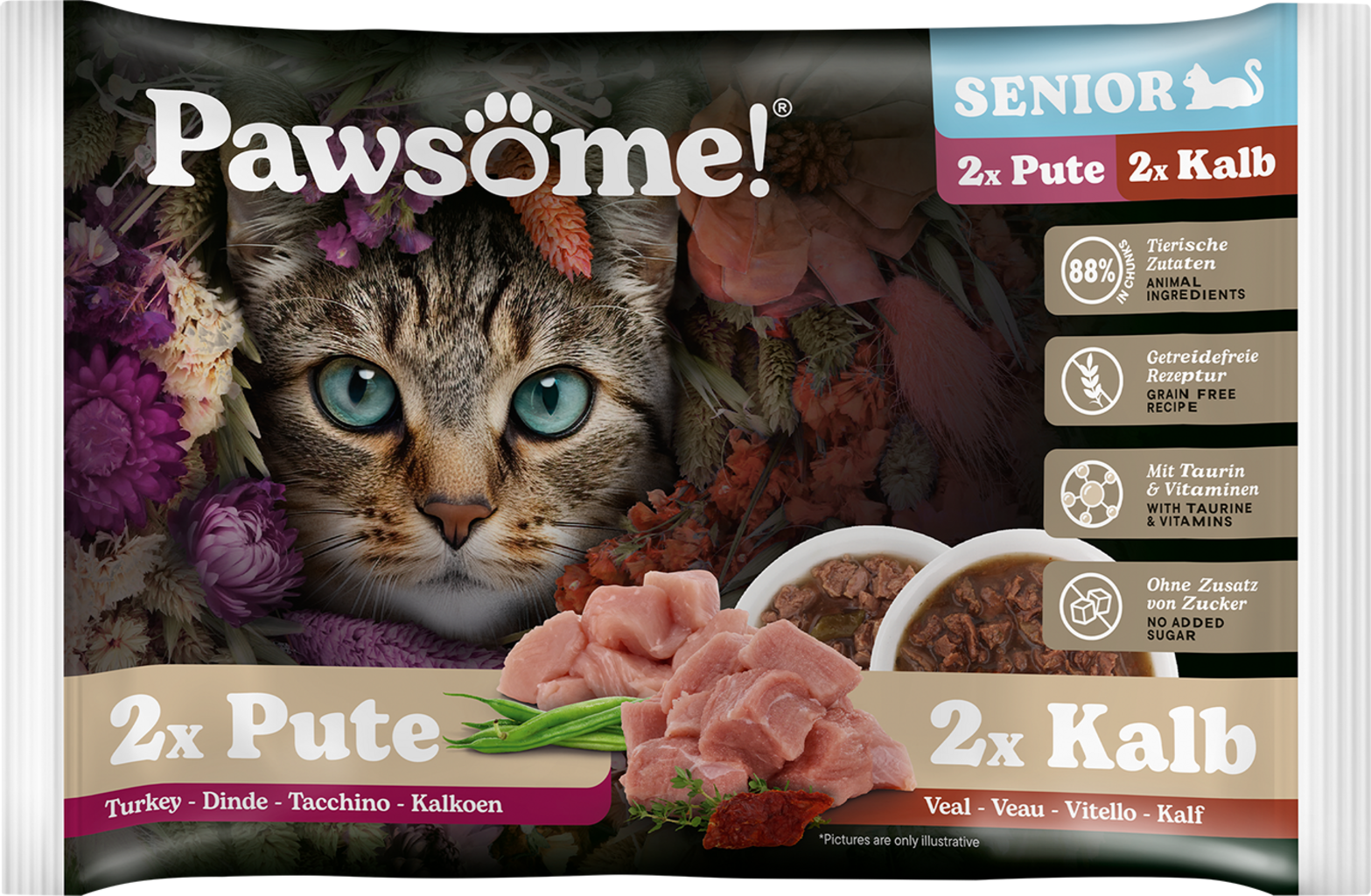 Pawsome! Senior Veau et Dinde – Pack Mixte 4 × 85 g, 340 g