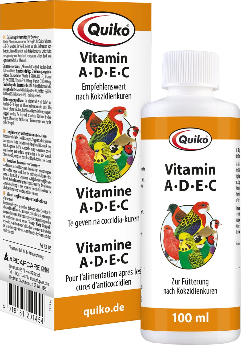 Quiko Vitamines Liquides A D E C pour Oiseaux Ornementaux, 100 ml