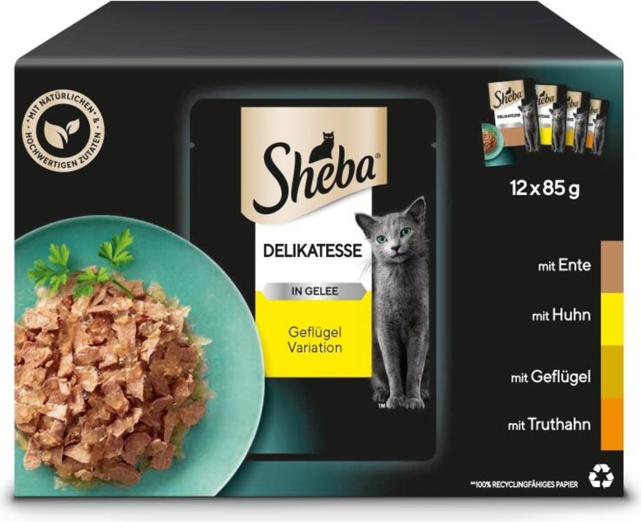 Sheba Sachets Fraîcheur Délicatesses Gelée Sélection à la Volaille - 12 x 85 g, 1.020 g