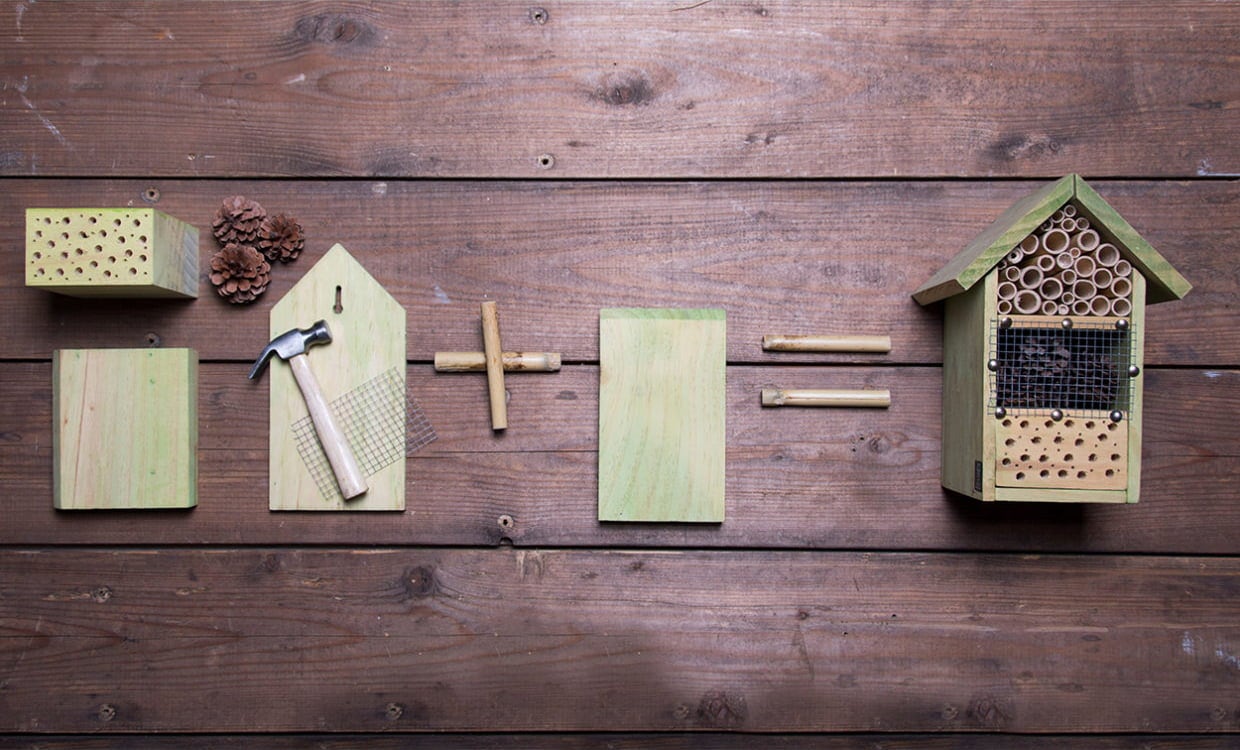 Assemblez vous-même votre hôtel à insectes ! Kit de bricolage amusant comprenant tous les outils nécessaires. Les insectes ont besoin d'un abri ! Avec cet hôtel à insectes, vous pourrez fournir à plusieurs types d'insectes extrêmement utiles dans votre jardin un endroit où nicher et passer l'hiver. Les perce-oreilles sont les ennemis naturels des pucerons et les abeilles sauvages sont responsables de la pollinisation des plantes. Leurs habitats sont de plus en plus restreints. Avec cet abri, vous pourrez activement aider à la conservation de la nature.