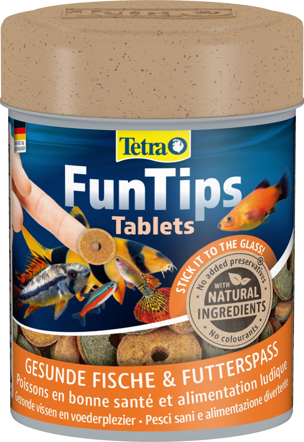 Tetra FunTips sont des aliments principaux sous forme de comprimés collants pour tous les poissons d'ornement dans les aquariums d'eau douce et sont également disponibles dans d'autres récipients.