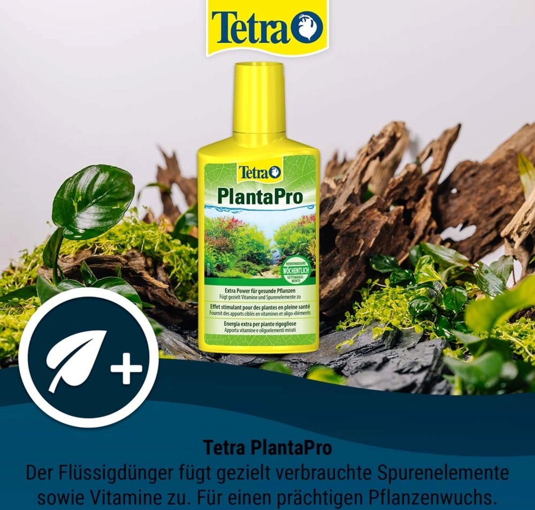 Tetra PlantaPro est un engrais pour les feuilles qui permet un ajout ciblée d'oligo-éléments dans les aquariums d'eau douce et est disponible dans différents contenants.