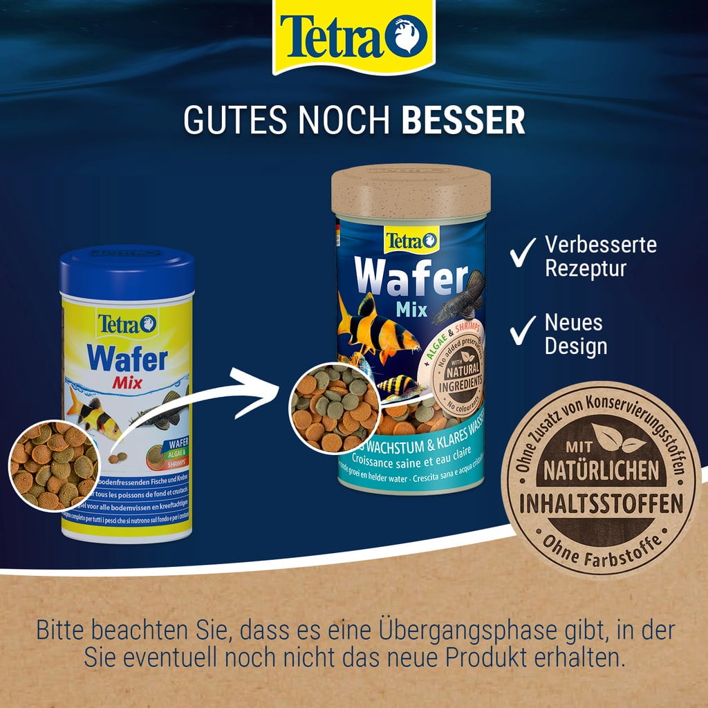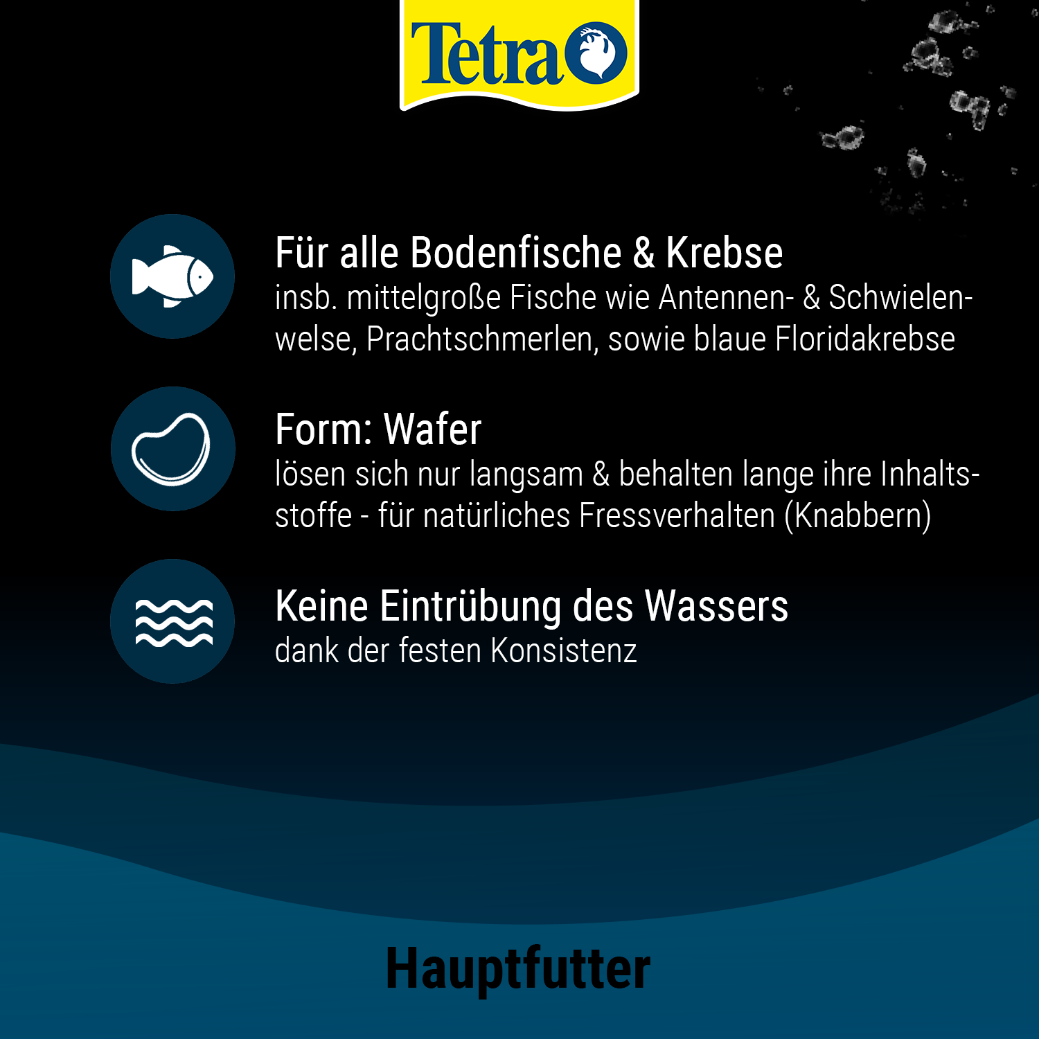 Le Tetra Wafer Mix combine des protéines végétales et animales et est idéal pour nourrir à la fois les poissons de fond et les crustacés !