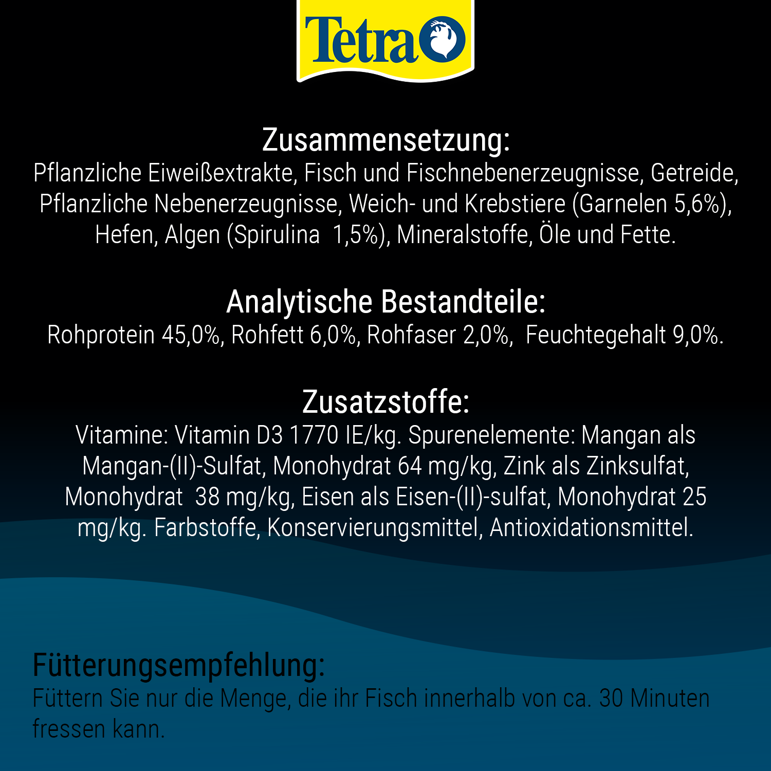 Les poissons de fond et les crustacés peuvent être entretenus idéalement avec Tetra Wafer Mix. L'aliment premium équilibré et riche en nutriments contient des crevettes pour une croissance saine. Les algues spiruline assurent une meilleure résistance. Le mélange de deux comprimés différents garantit une alimentation variée et optimale.