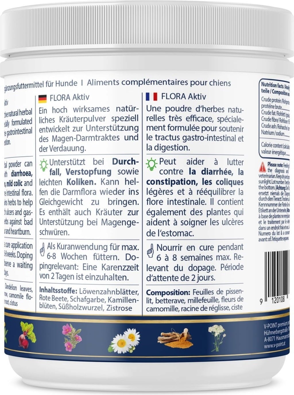 avis en français à propos du produit V-POINT FLORA Aktiv - Poudre Végétale pour Chiens