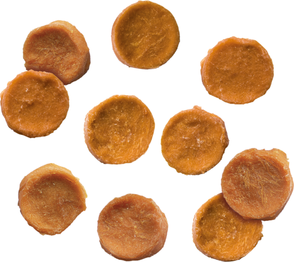 Mmm, mâcher n’a jamais été aussi savoureux ! Ces délicats médaillons à base de viande maigre de poulet offrent à votre chien un plaisir riche en protéines et un véritable moment de mastication, alliant goût intense et occupation durable. De quoi choyer et récompenser votre compagnon à quatre pattes de manière adaptée à son espèce.