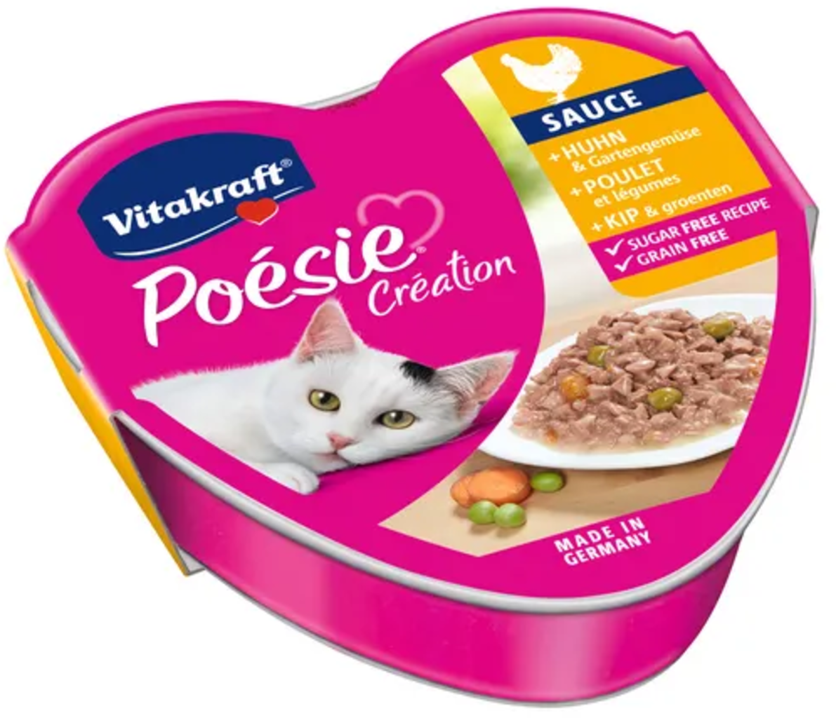 Vitakraft Poésie® Crèation - Pâtée pour Chats, Poulet et légumes du jardin en sauce (85 g)