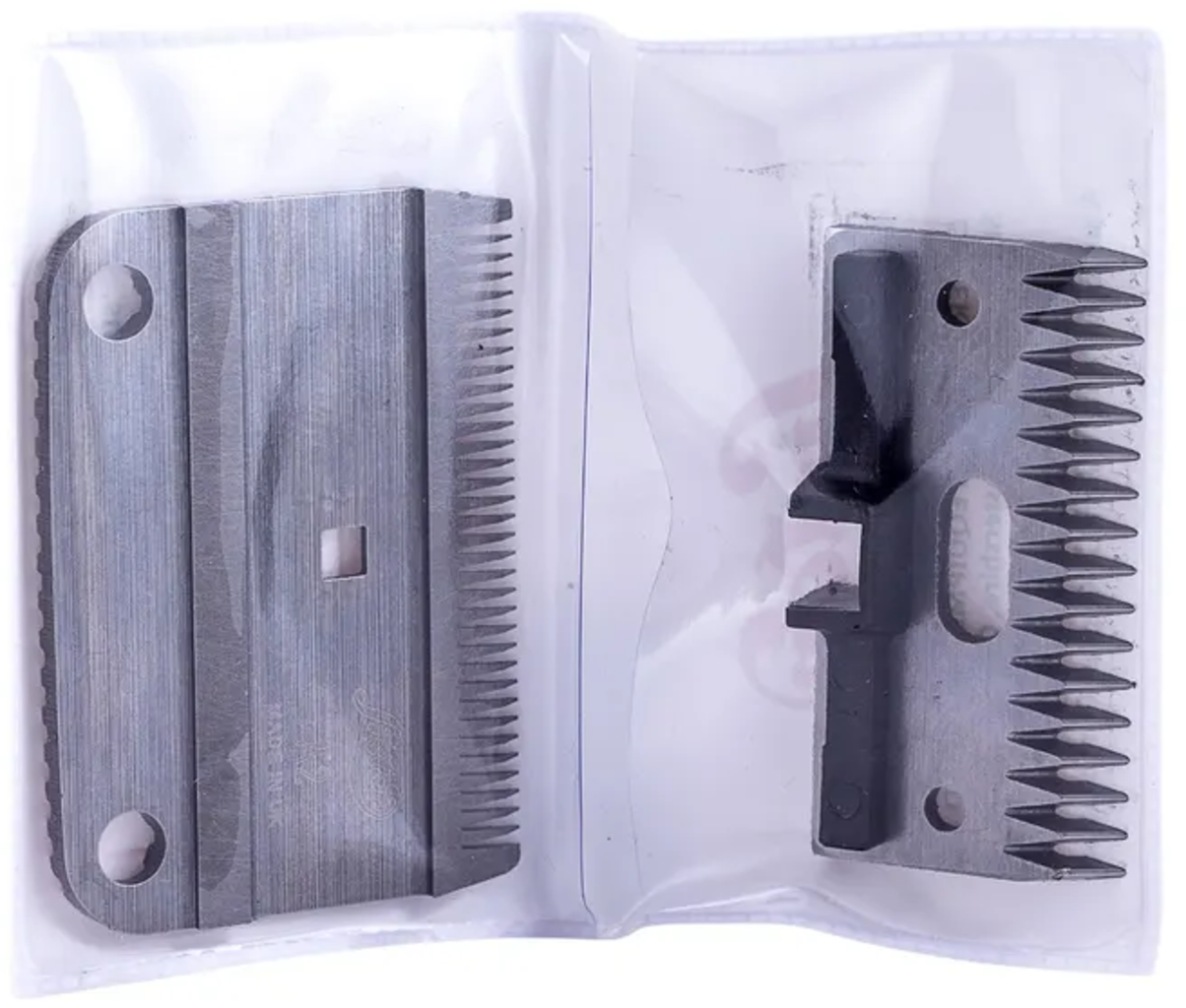 Ensemble professionnel, interchangeable et fabriquée en acier inoxydable. Il présente une largeur de coupe de 75 mm, 35 dents et une longueur de coupe de 2,5 mm. L'accessoire optimal pour laisser les poils un peu plus longs.