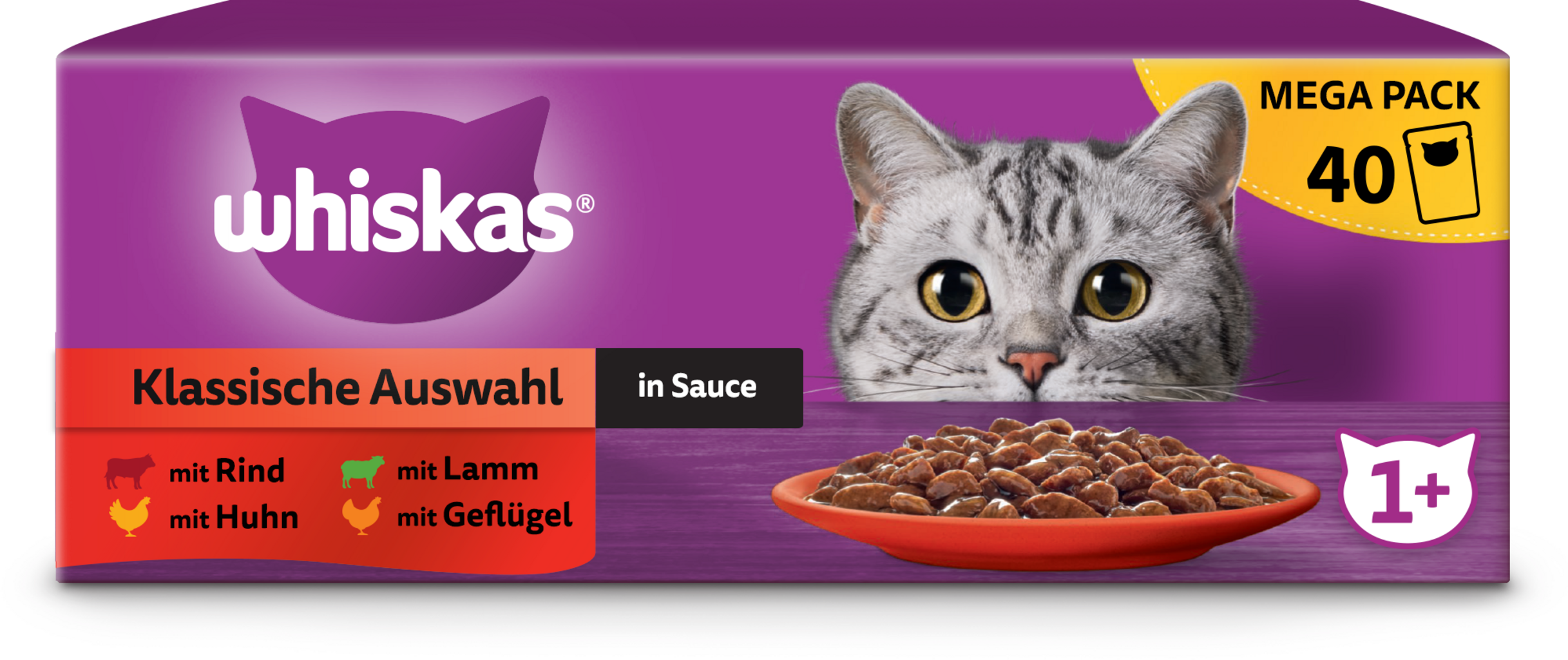 Whiskas Megapack 40×85 g Sélection Classique en Sauce 1+, 3.400 g