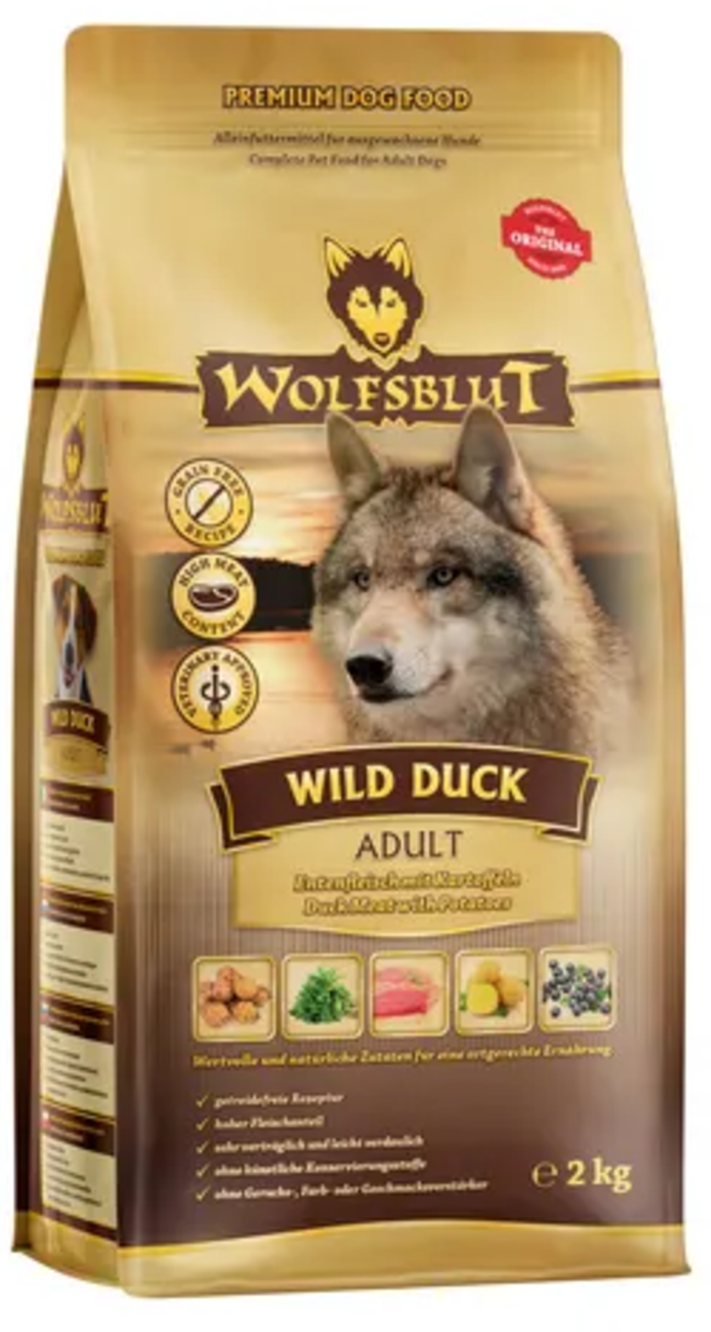 WOLFSBLUT Wild Duck Canard & Pommes de Terre - Croquettes pour Chiens, 2 kg