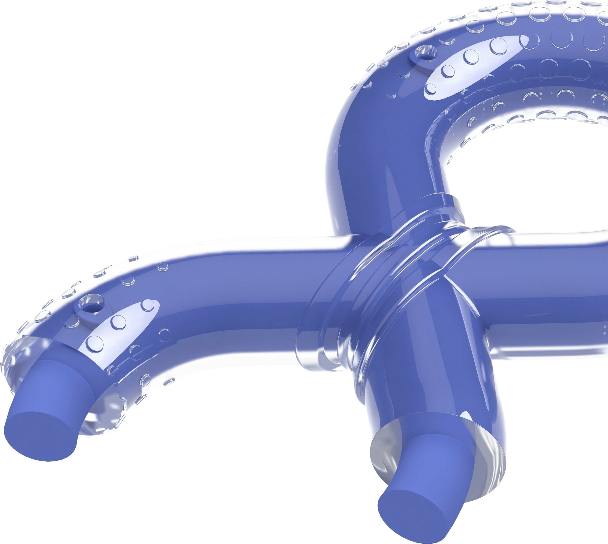 Le jouet est entièrement recouvert de caoutchouc thermoplastique (TPR) et sa forme le rend très pratique à prendre en main et en bouche.
